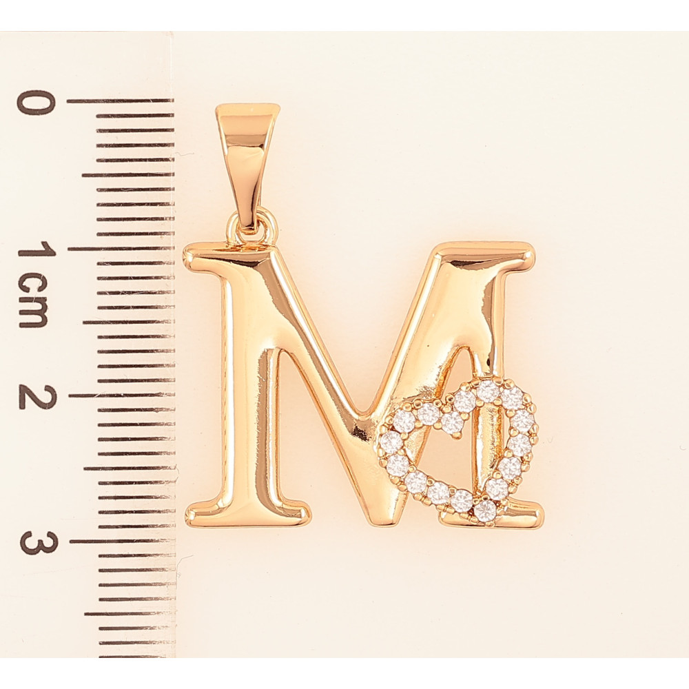 Кулон Xuping цвет Позолота 18K "Буква M с сердечком" для цепочки до 7мм
