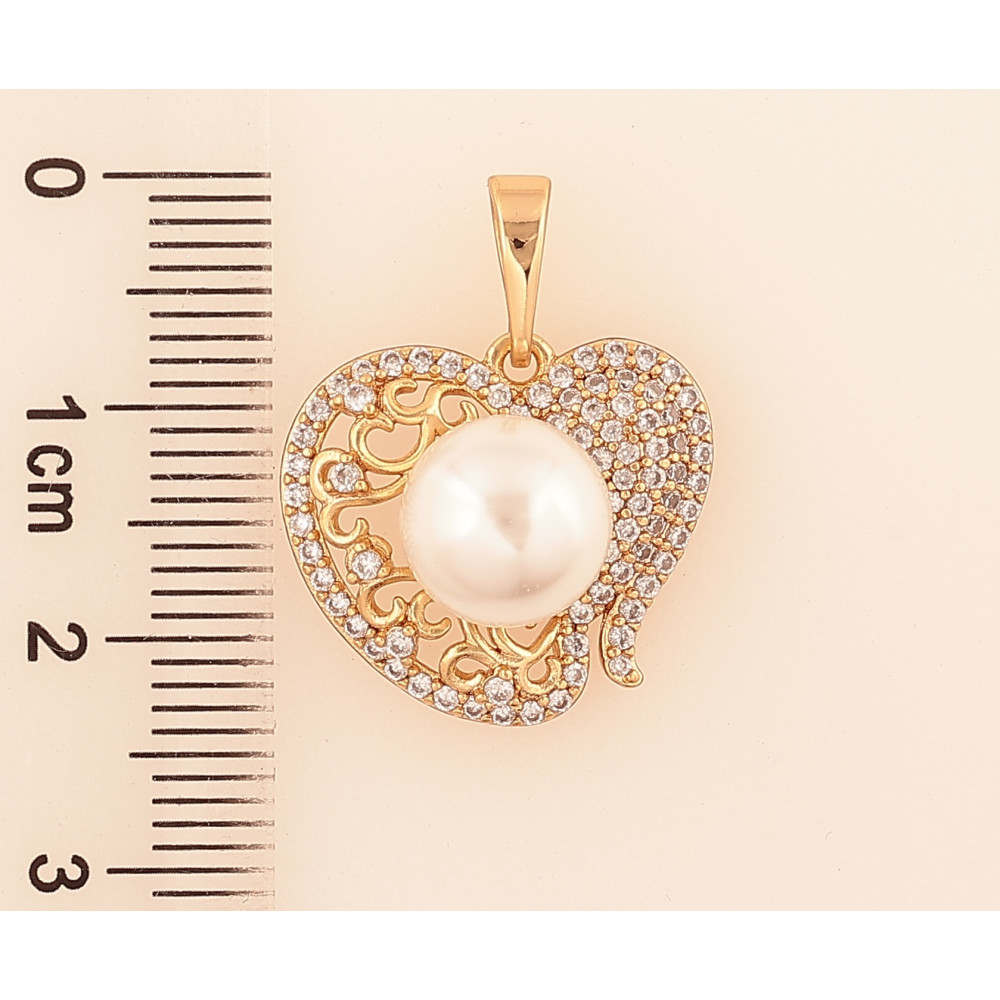 Кулон Xuping цвет Позолота 18K "Сердечко с инкрустацией кристаллами и жемчужиной" для цепочки до 6мм