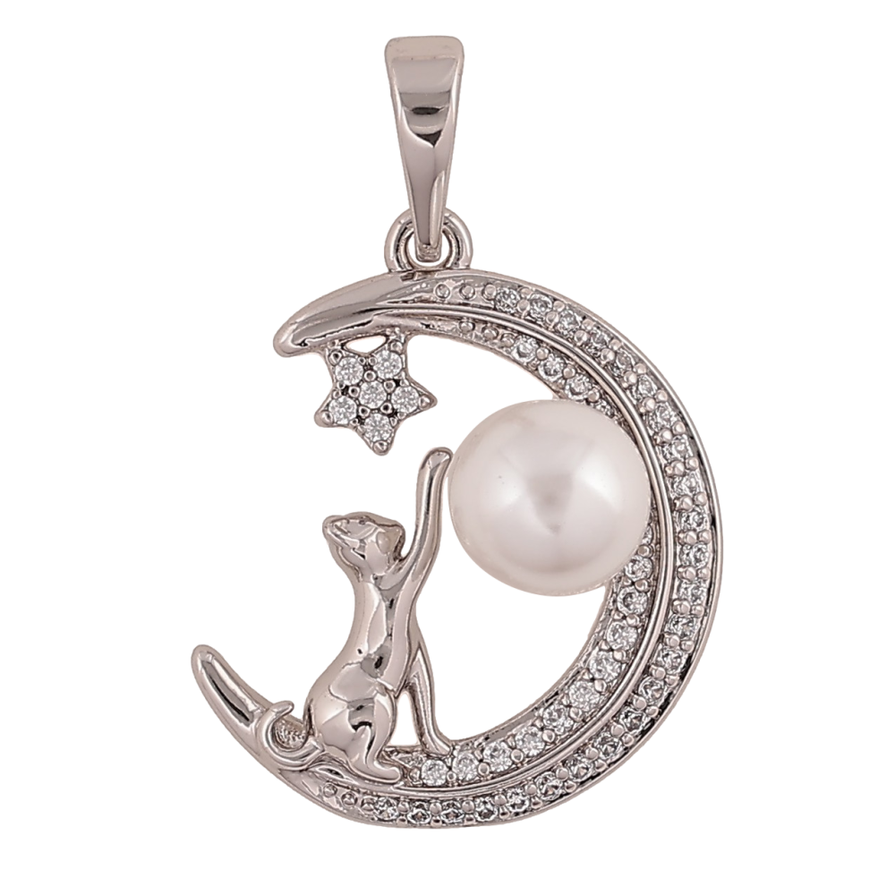 Кулон Xuping цвет Родий "Котик в полумесяце" для цепочки до 6мм