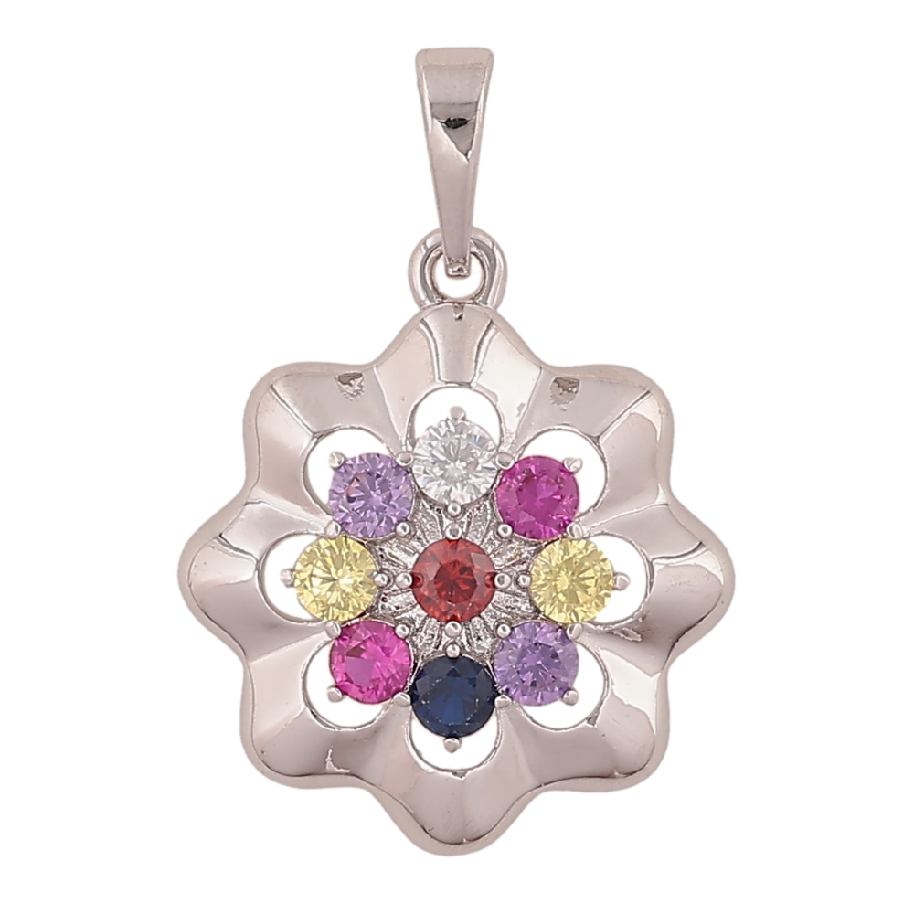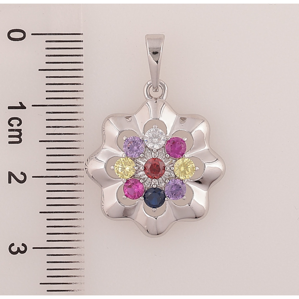 Кулон Xuping цвет Родий "Цветочек с разноцветными кристаллами" для цепочки до 6мм