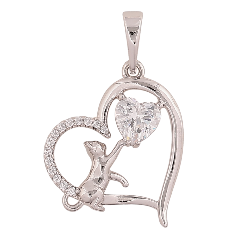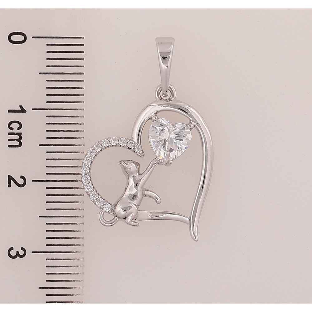 Кулон Xuping цвет Родий "Сердечко с котиком" для цепочки до 6мм