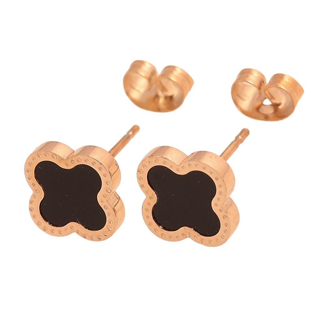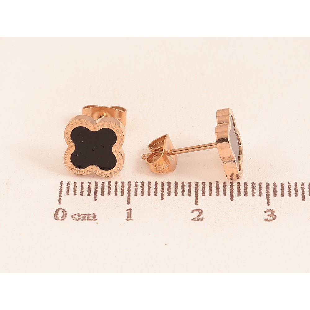 Серьги Нержавеющая сталь пусеты "Клевер с черными вставками" 9х9мм