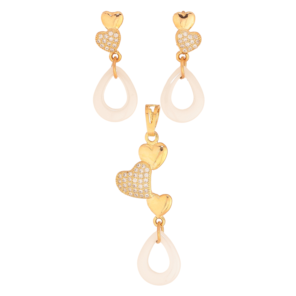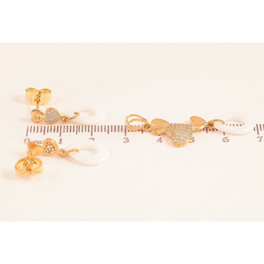 Набор Xuping цвет Позолота 18K Серьги Кулон "Сердечки с подвесками из белой керамики"