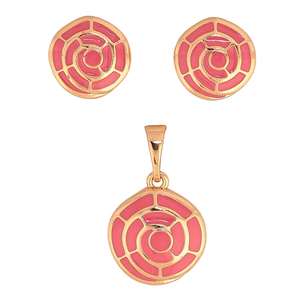 Набор Xuping цвет Позолота 18K серьги кулон "Узор с розовой эмалью"