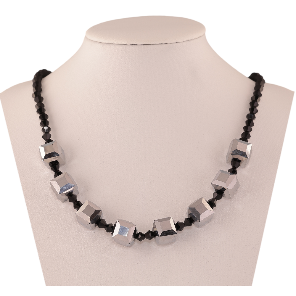 Бусы на резинке "Узор из черных и серебряных бусин" длина 72см х 4-10мм
