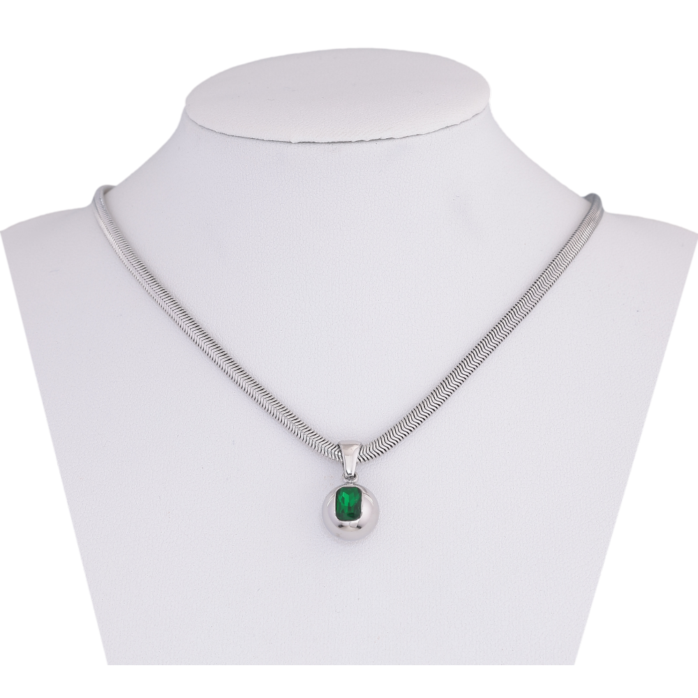 Подвеска на цепочке Нержавеющая сталь "Шарик с зеленым кристаллом" длина 41-46см х 3мм