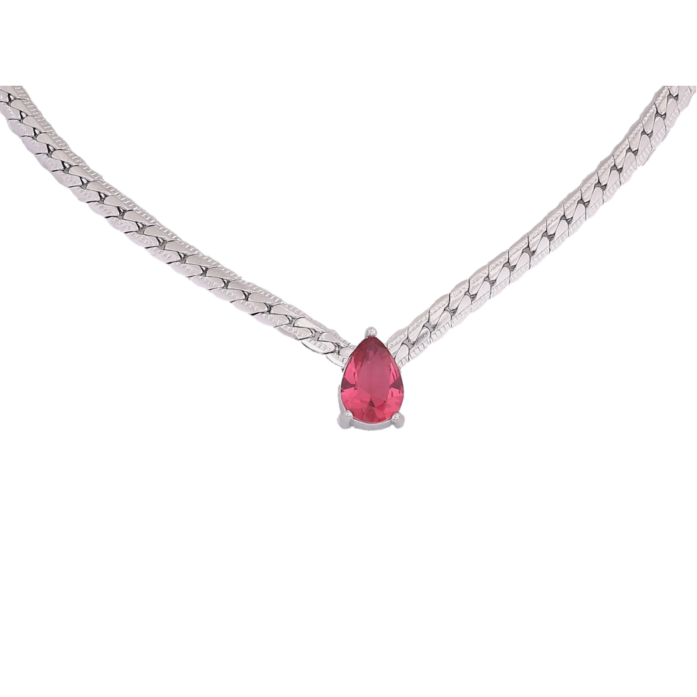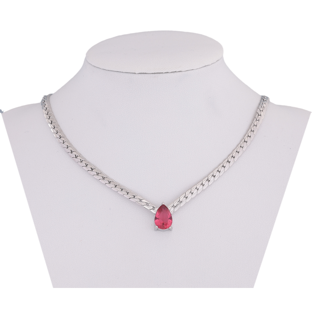 Подвеска на цепочке Нержавеющая сталь "Цепочка с розовой кристальной капелькой" длина 40-45см х 4мм