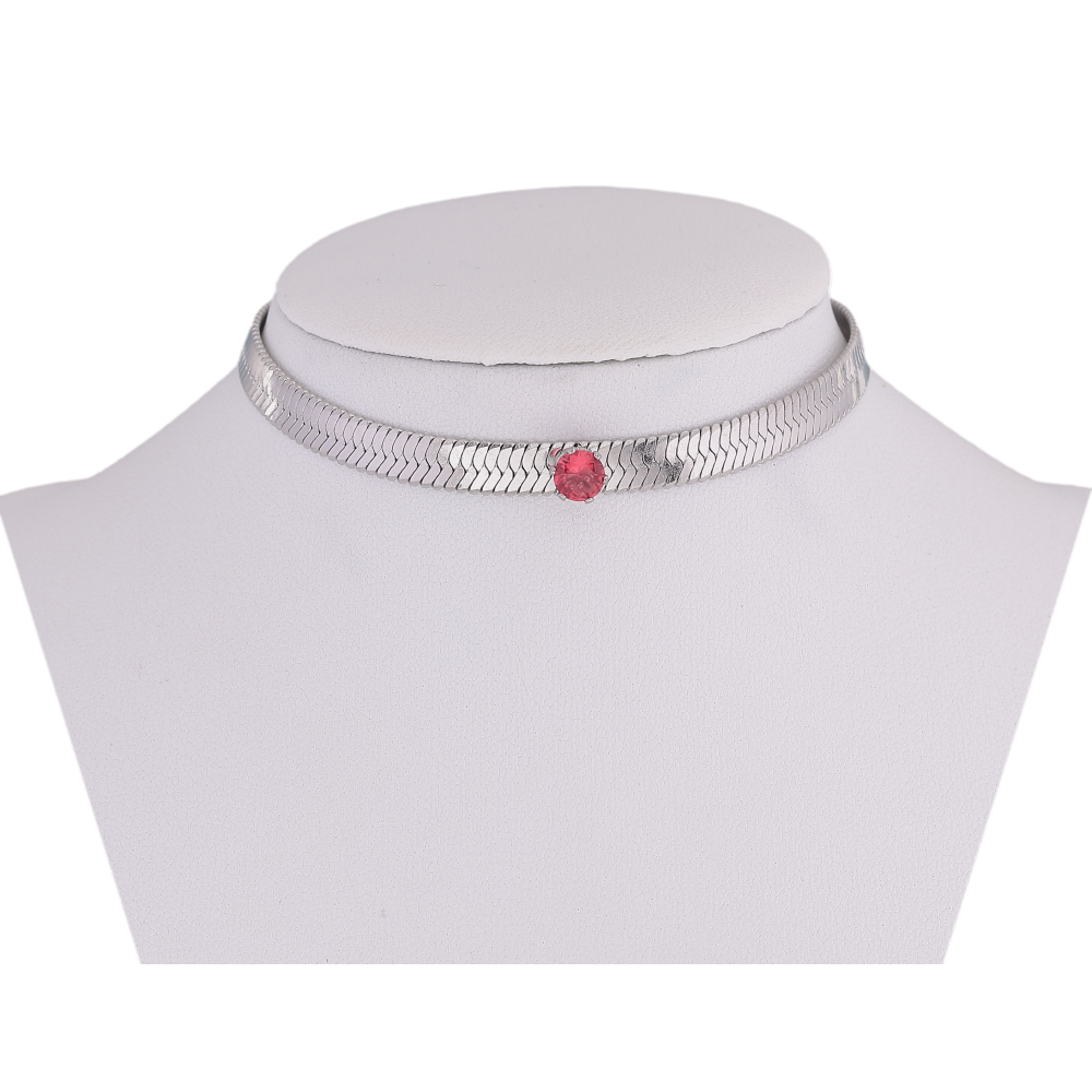 Подвеска на цепочке Нержавеющая сталь "Цепочка с розовым кристаллом" длина 36-41см х 5мм