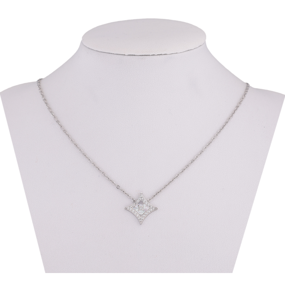Подвеска на цепочке Нержавеющая сталь "Ромб с кристаллами и перламутровой вставкой" длина 42-47см х 1мм