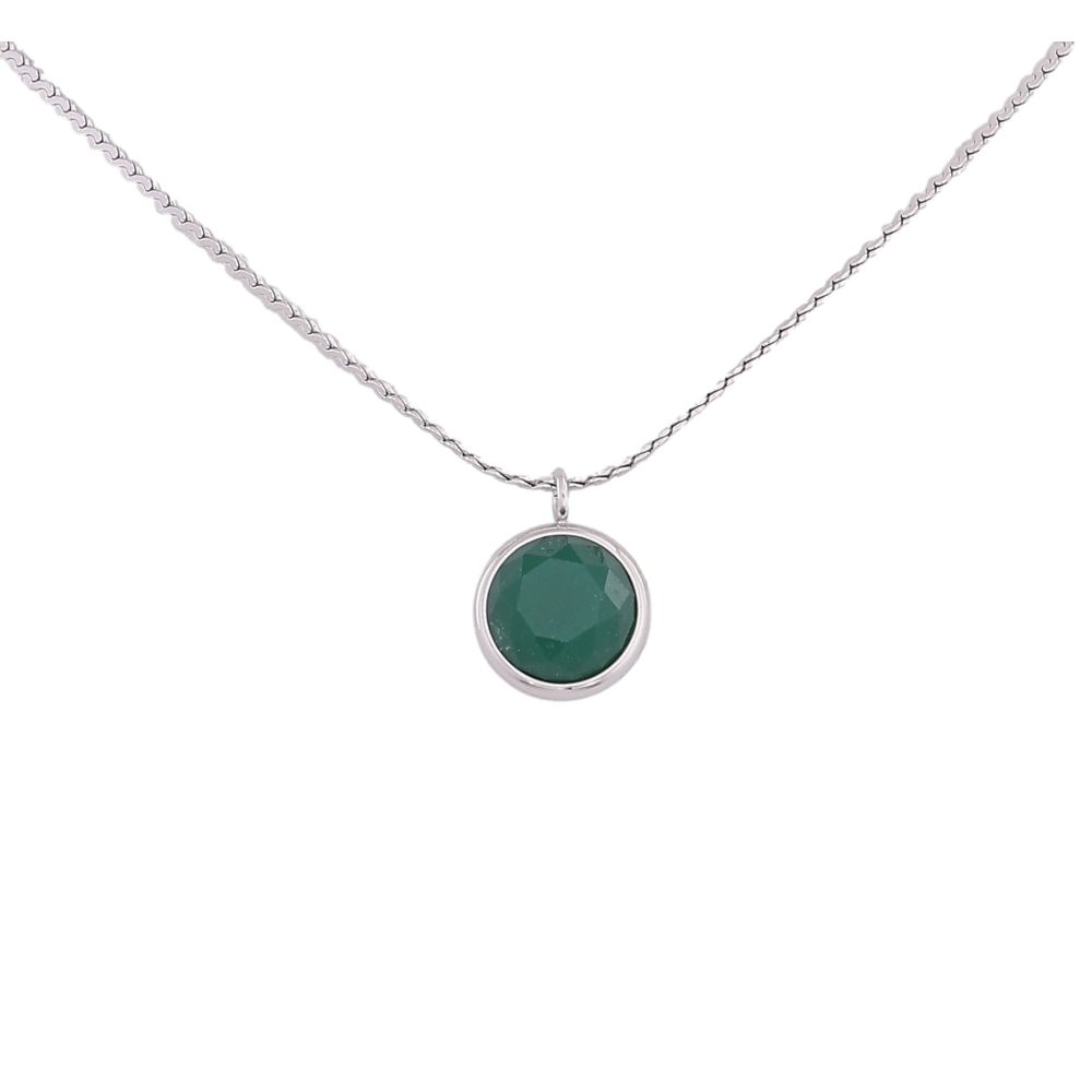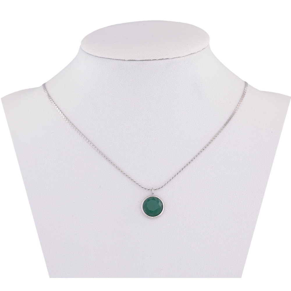 Подвеска на цепочке Нержавеющая сталь "Зеленый кристалл, ø 10мм" длина 41-46см х 1мм