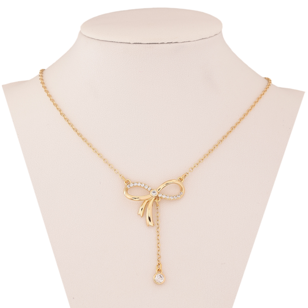 Подвеска на цепочке Xuping цвет Позолота 14K "Бант с кристаллами" длина 41-46см х 1.5мм