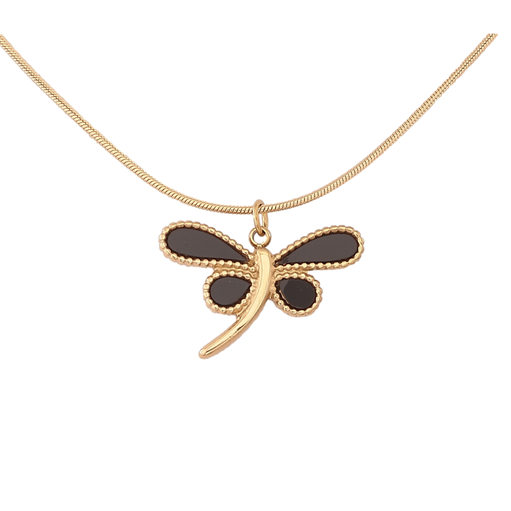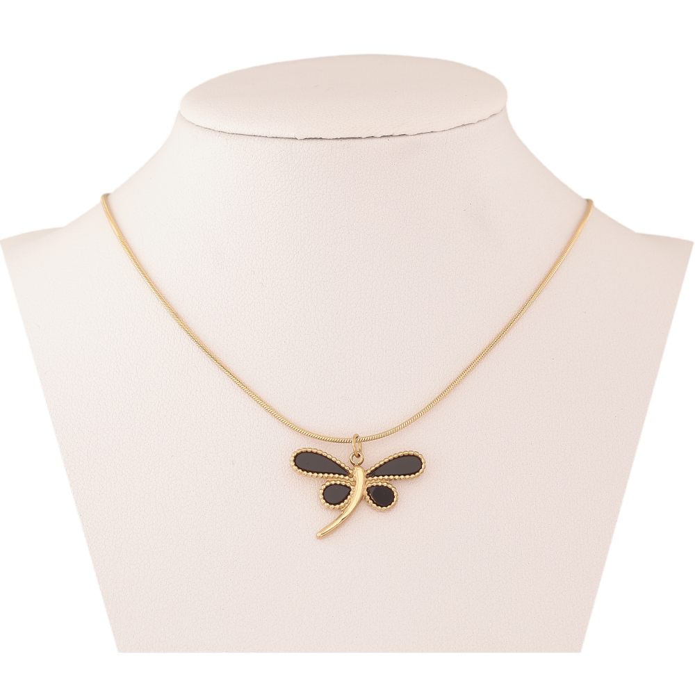 Подвеска на цепочке Xuping ТТМ Stainless Steel цвет 14К "Стрекоза с черными вставками" длина 46-51см х 1мм