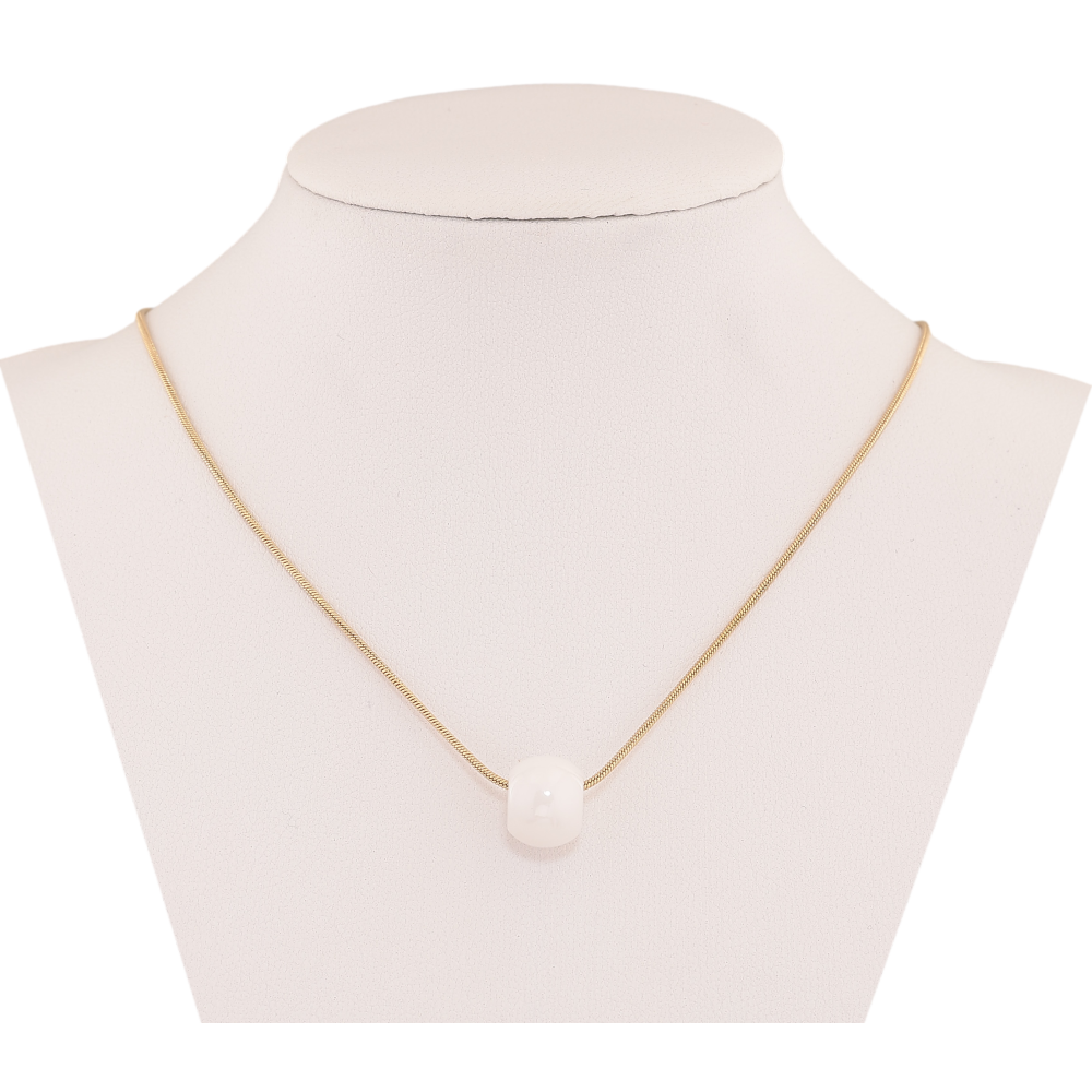 Подвеска на цепочке Xuping ТТМ Stainless Steel цвет 14К "Белая керамическая бусина" длина 45-50см х 1.5мм