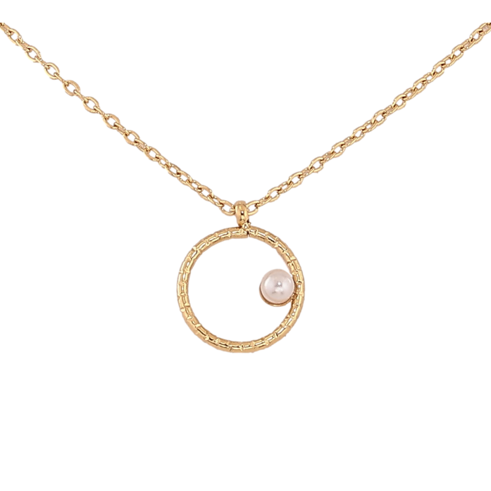 Подвеска на цепочке Xuping ТТМ Stainless Steel цвет 14К "Колечко с жемчужиной" длина 40.5-45.5см х 1мм