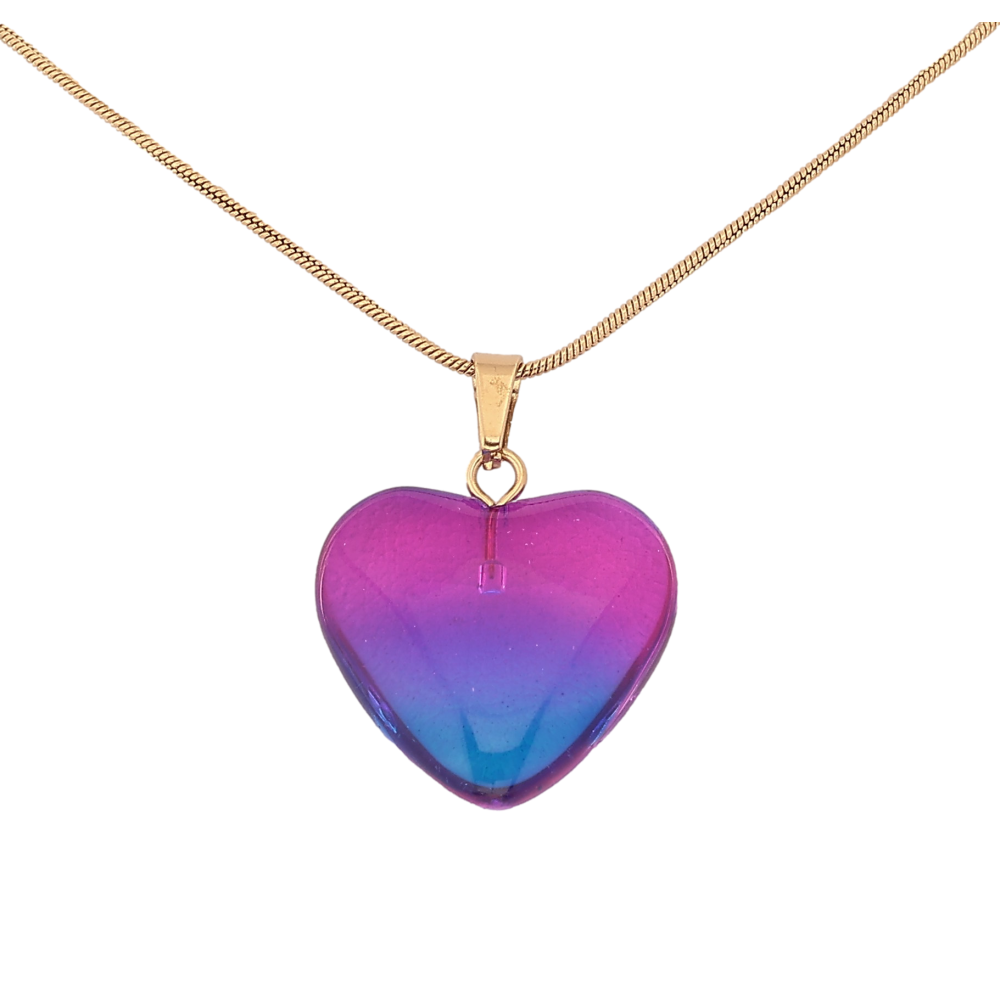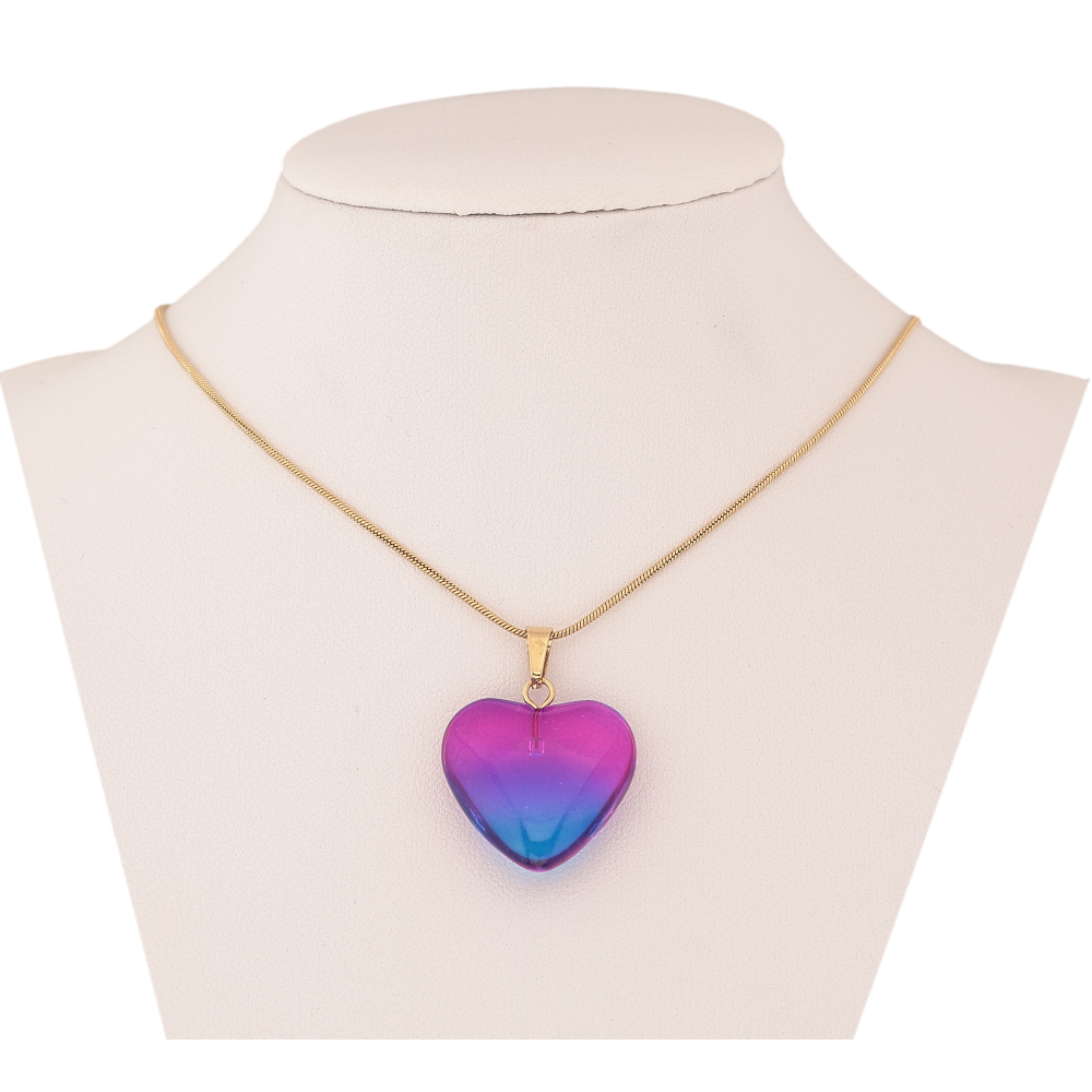 Подвеска на цепочке Xuping ТТМ Stainless Steel цвет 14К "Малиново-синее сердечко" длина 45-50см х 1мм