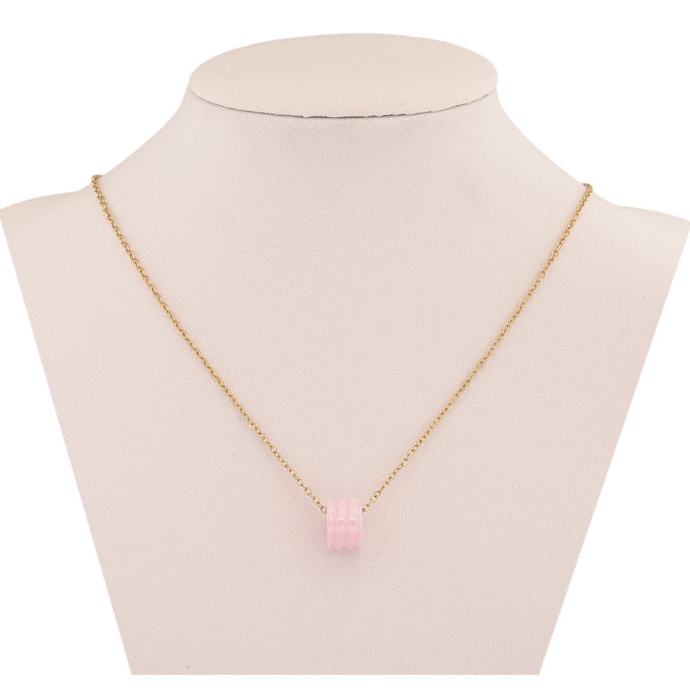 Подвеска на цепочке Xuping ТТМ Stainless Steel цвет 14К "Бусина из розовой керамики" длина 45-50см х 1мм