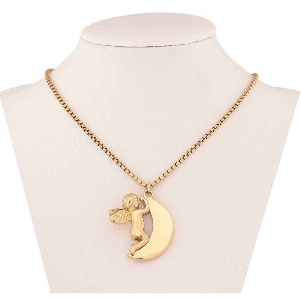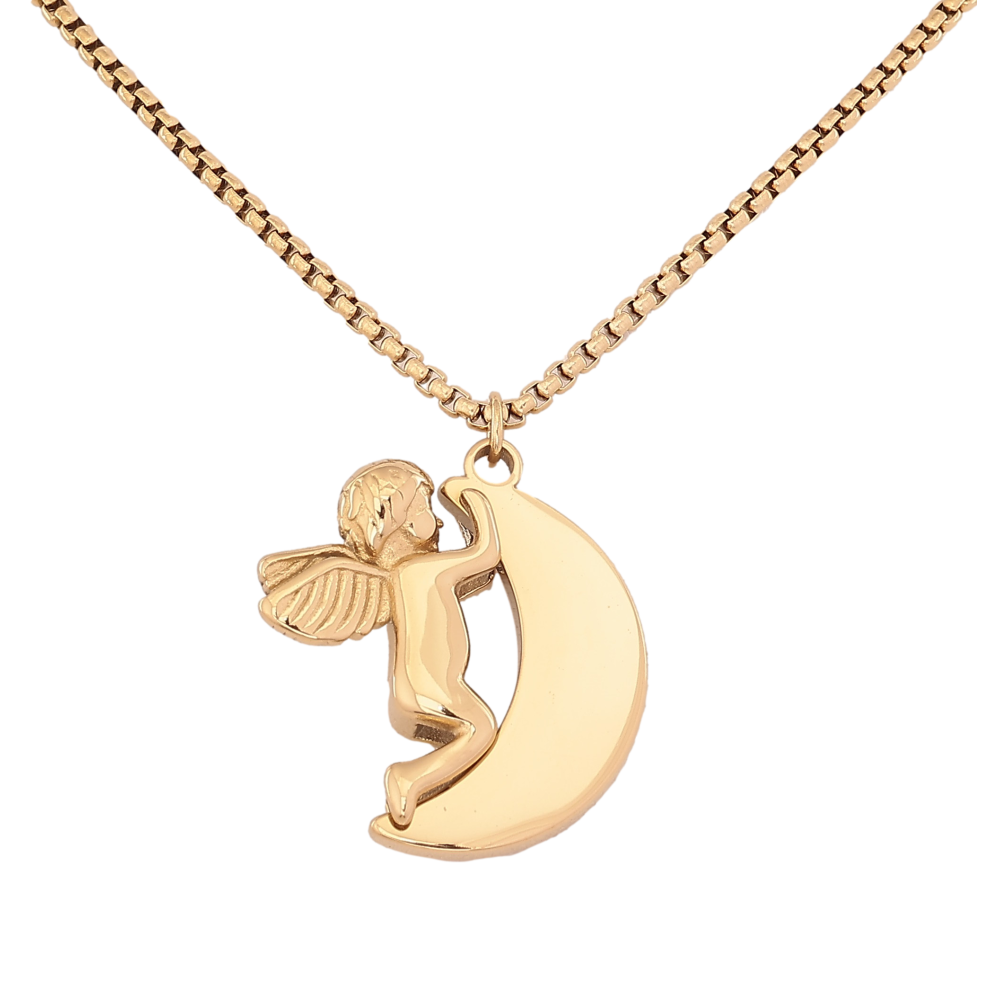 Подвеска на цепочке Xuping ТТМ Stainless Steel цвет 14К "Полумесяц с ангелочком" длина 45-50см х 2мм