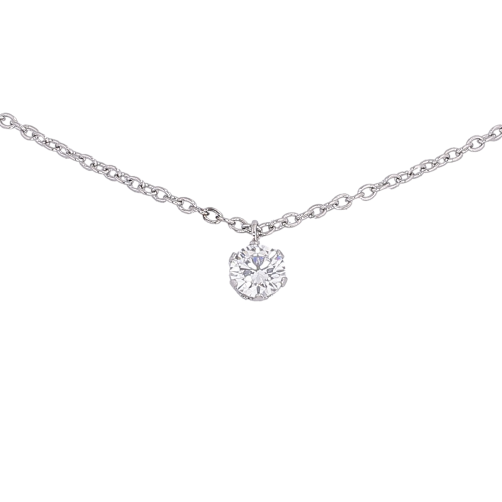 Подвеска на цепочке Xuping ТТМ Stainless Steel цвет Родий "Кристалл, ø 5мм" длина 45-50см х 1.5мм