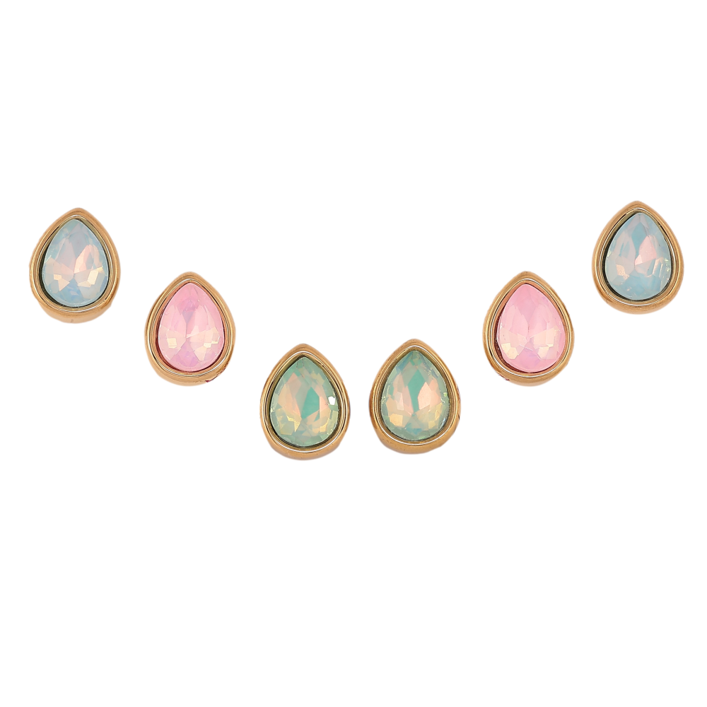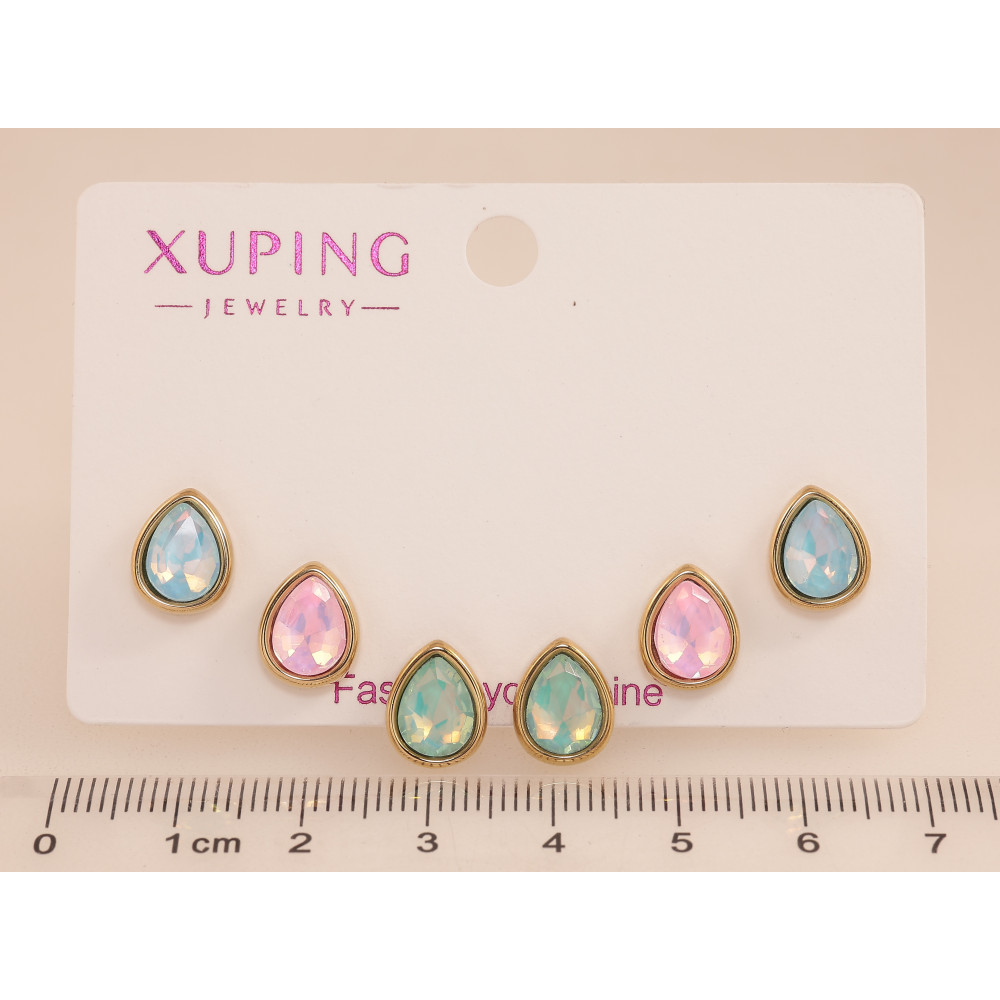 Серьги Набор (3 пары) Xuping TTM Stainless Steel цвет 14К пусеты "Цветные кристальные капельки"