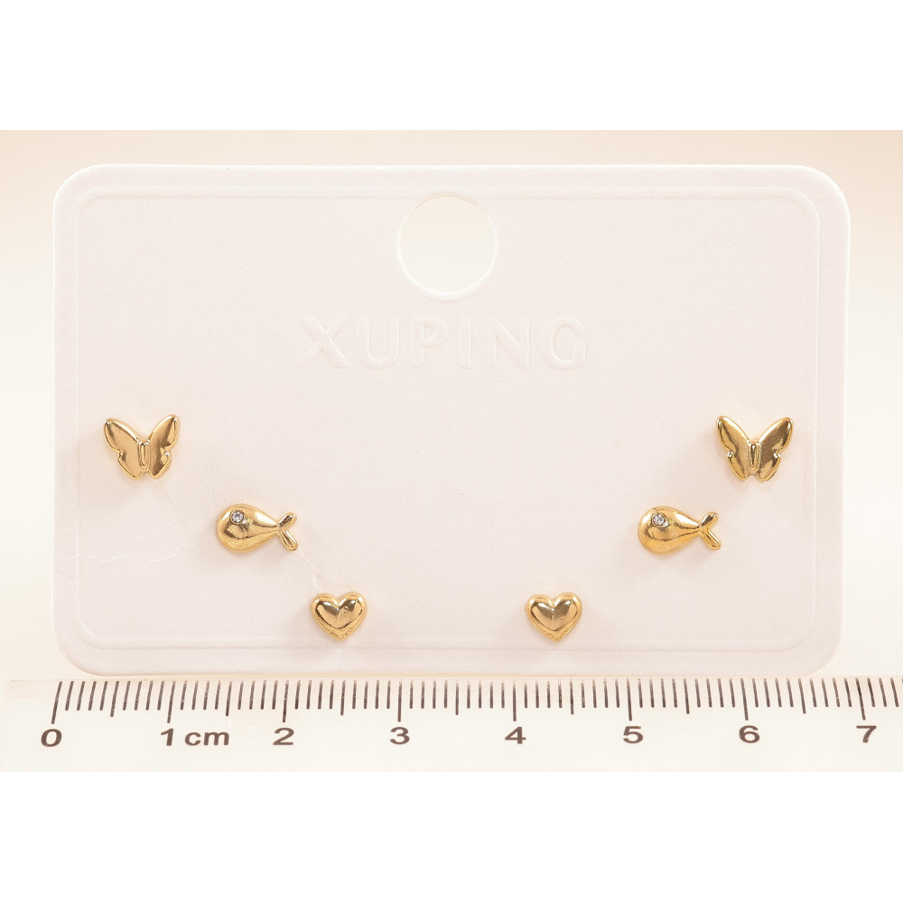 Серьги Набор (3 пары) Xuping TTM Stainless Steel цвет 14К пусеты "Бабочки, рыбки и сердечки"