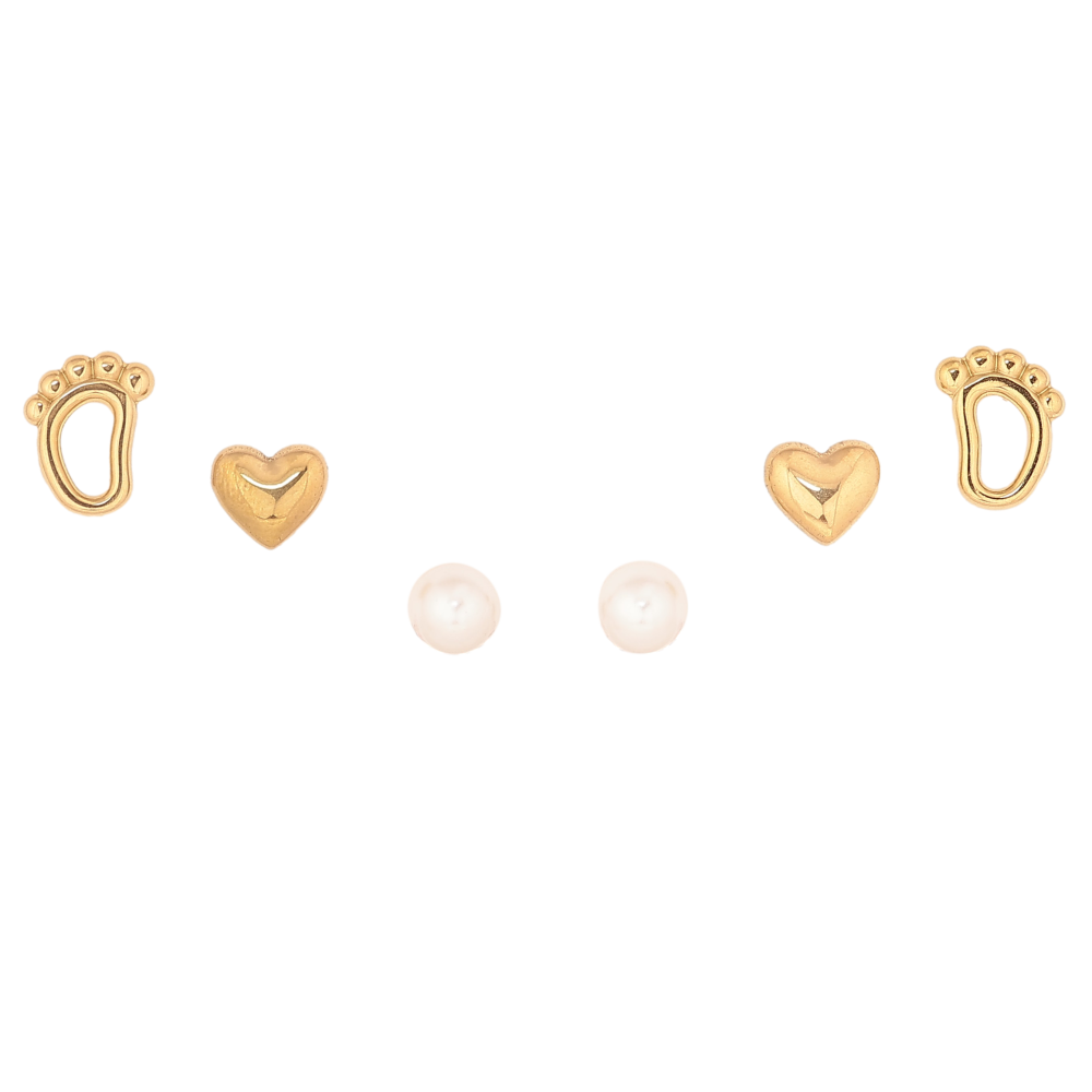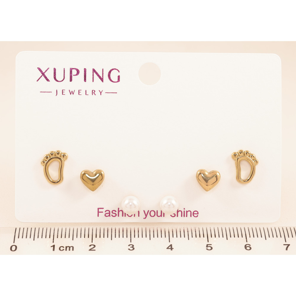 Серьги Набор (3 пары) Xuping TTM Stainless Steel цвет 14К пусеты "Ножки, сердечки и жемчужины" ø 5мм