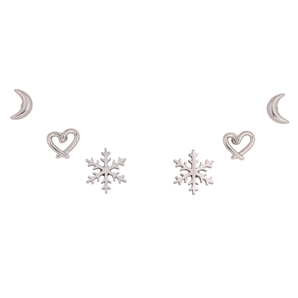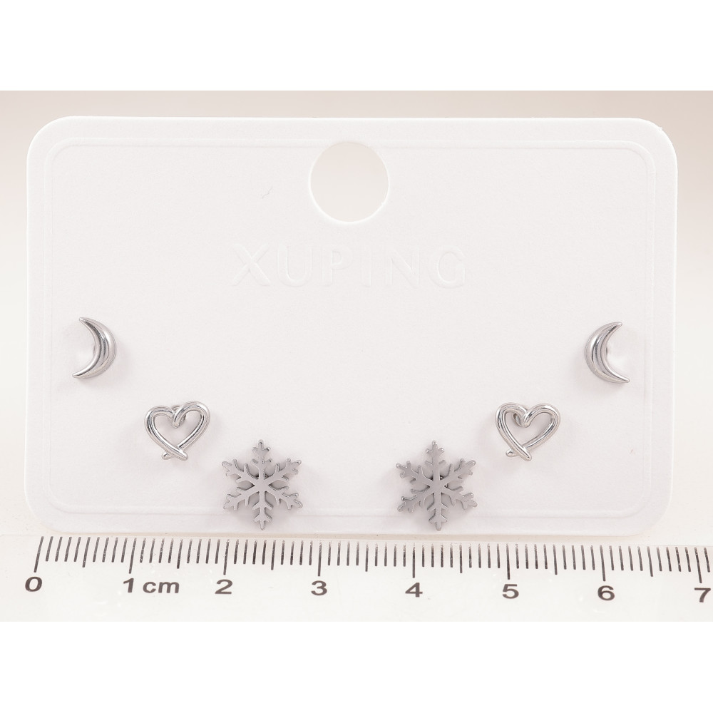 Серьги Набор (3 пары) Xuping TTM Stainless Steel цвет Родий пусеты "Луна, сердечки и снежинки"