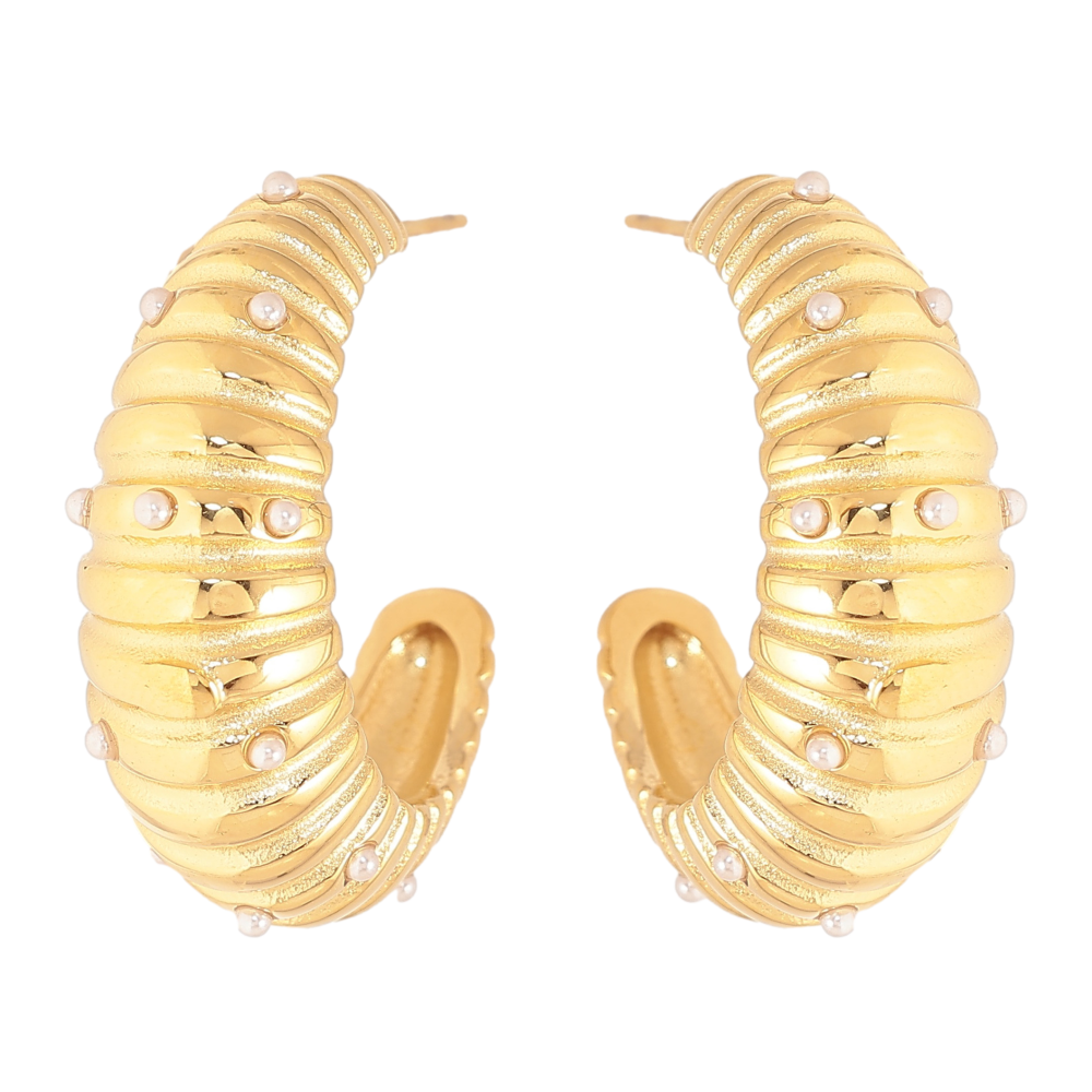 Серьги Нержавеющая сталь пусеты "Декоративные дуги с жемчужными вставками"