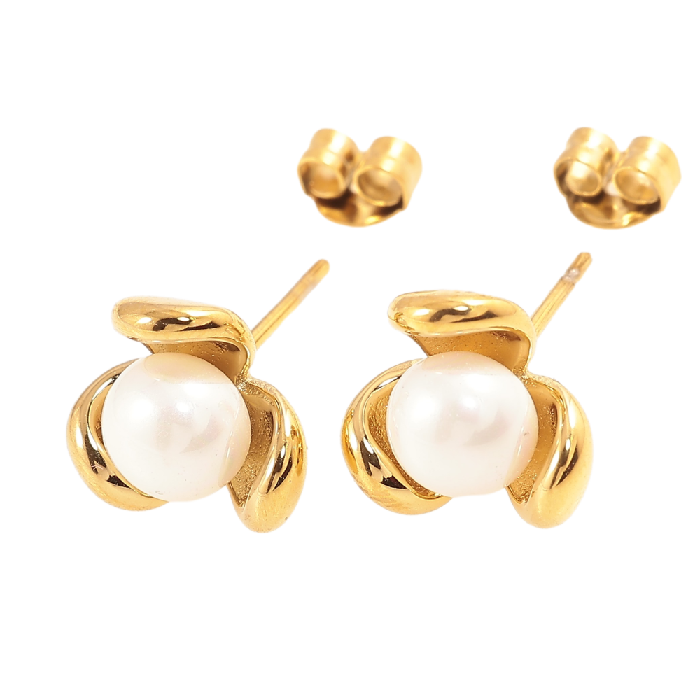 Серьги Нержавеющая сталь пусеты "Цветочки с жемчужинами" фото №1