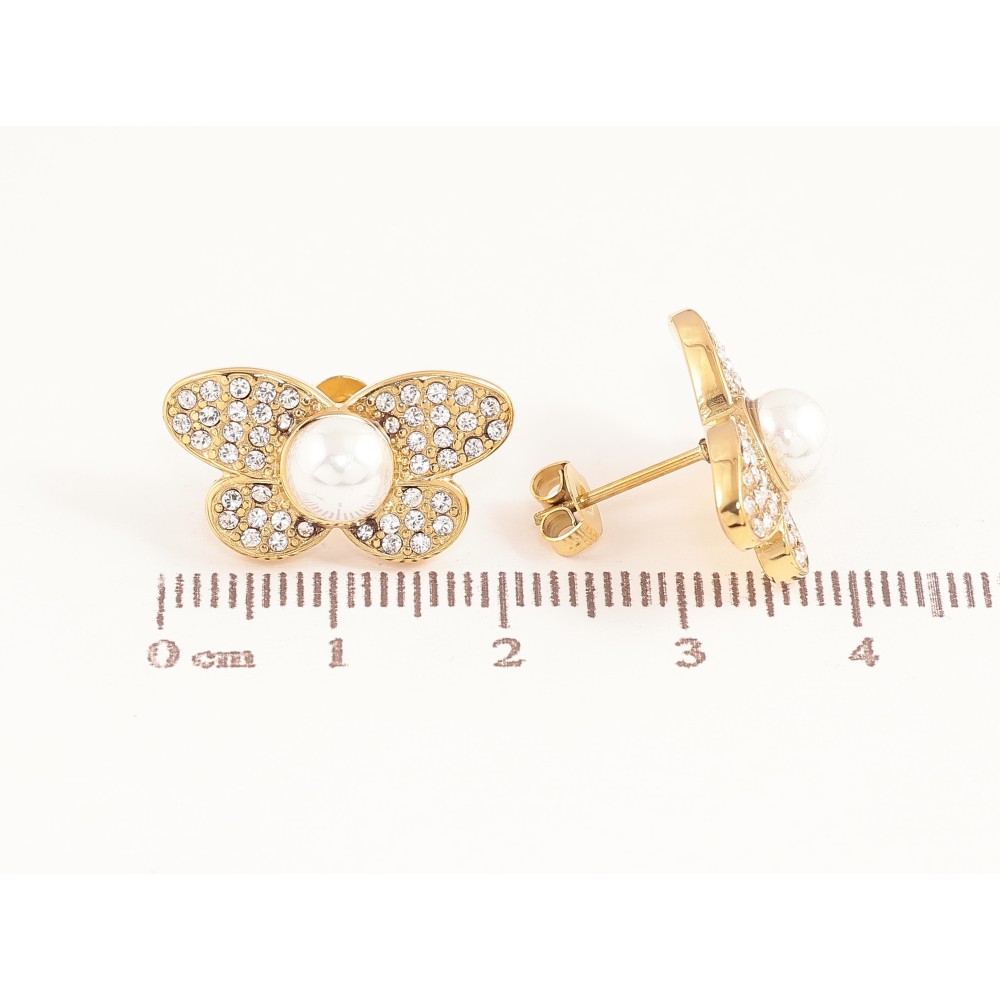 Серьги Нержавеющая сталь пусеты "Бабочки с кристаллами и жемчужинами"