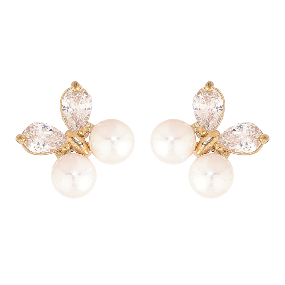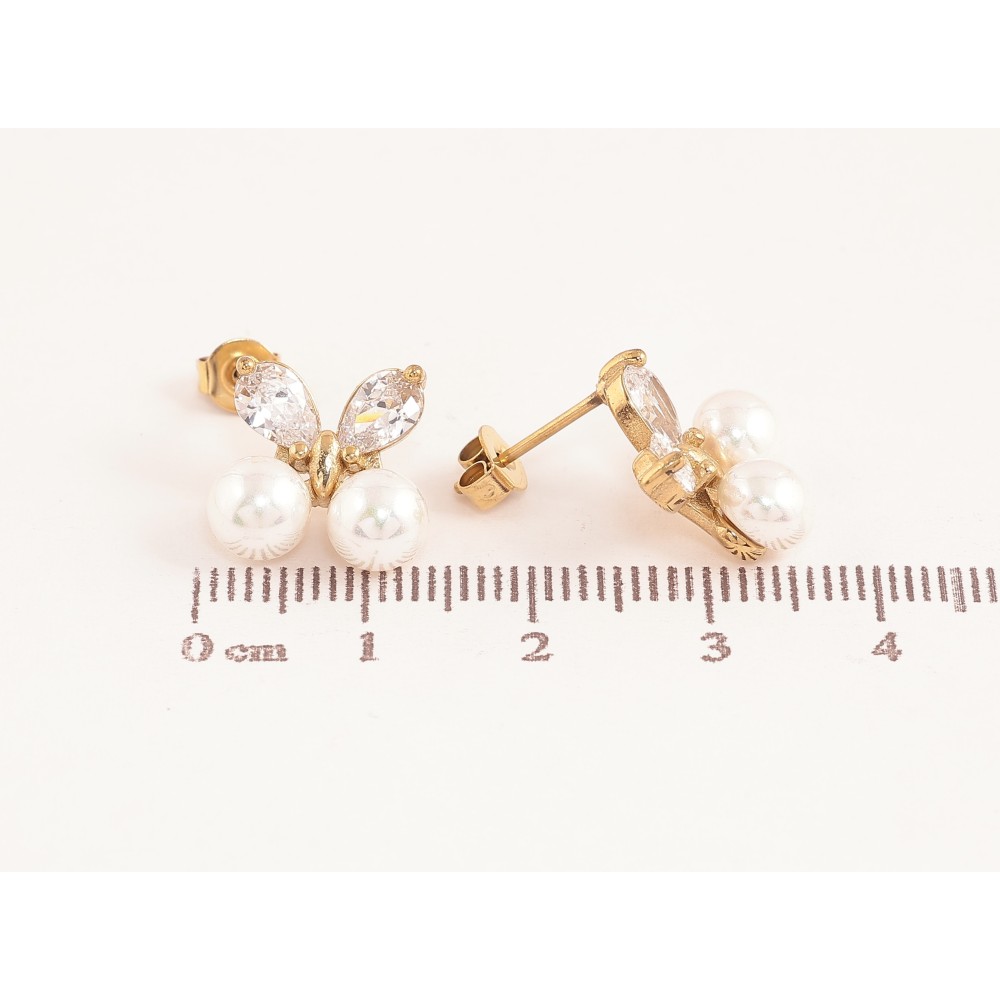 Серьги Нержавеющая сталь пусеты "Бабочки с жемчужинами и кристаллами"