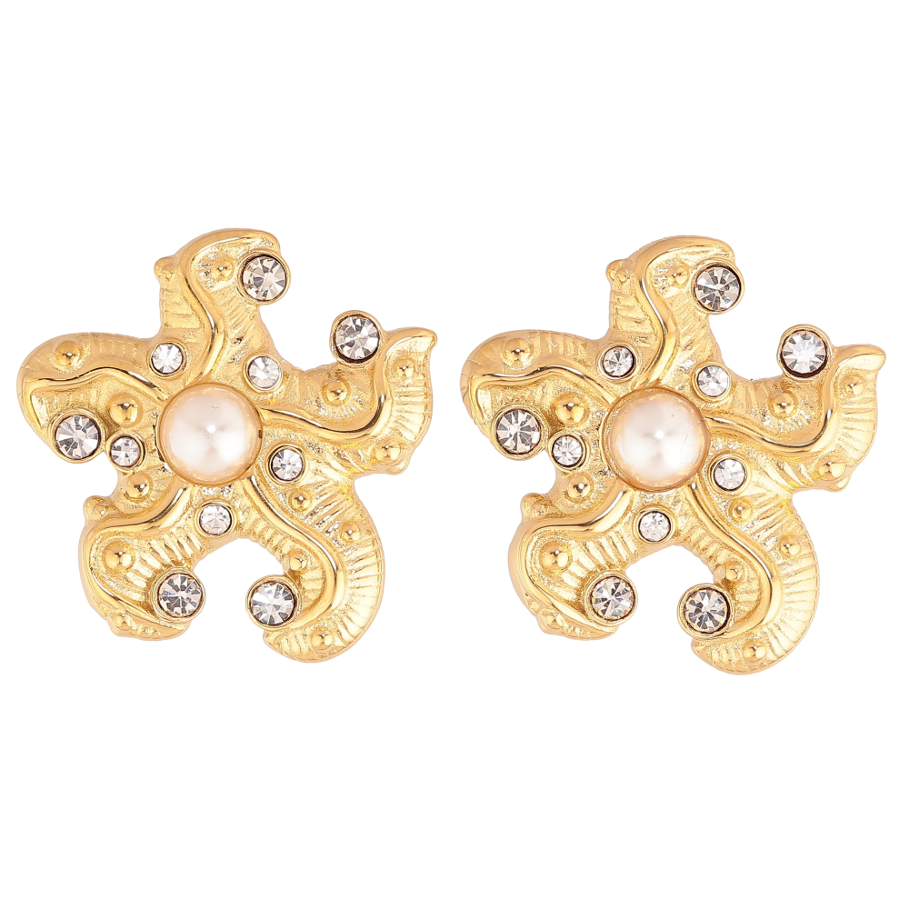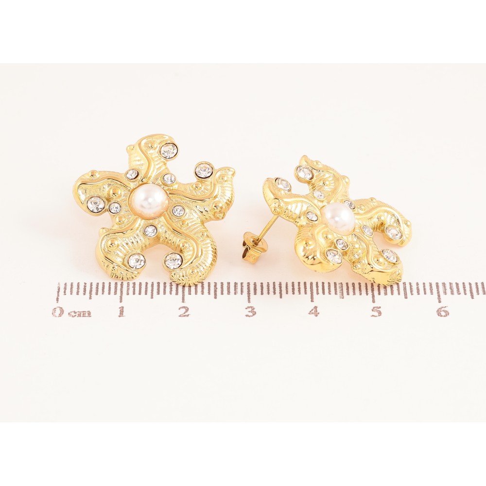 Серьги Нержавеющая сталь пусеты "Морские звезды с жемчужинами и кристаллами"