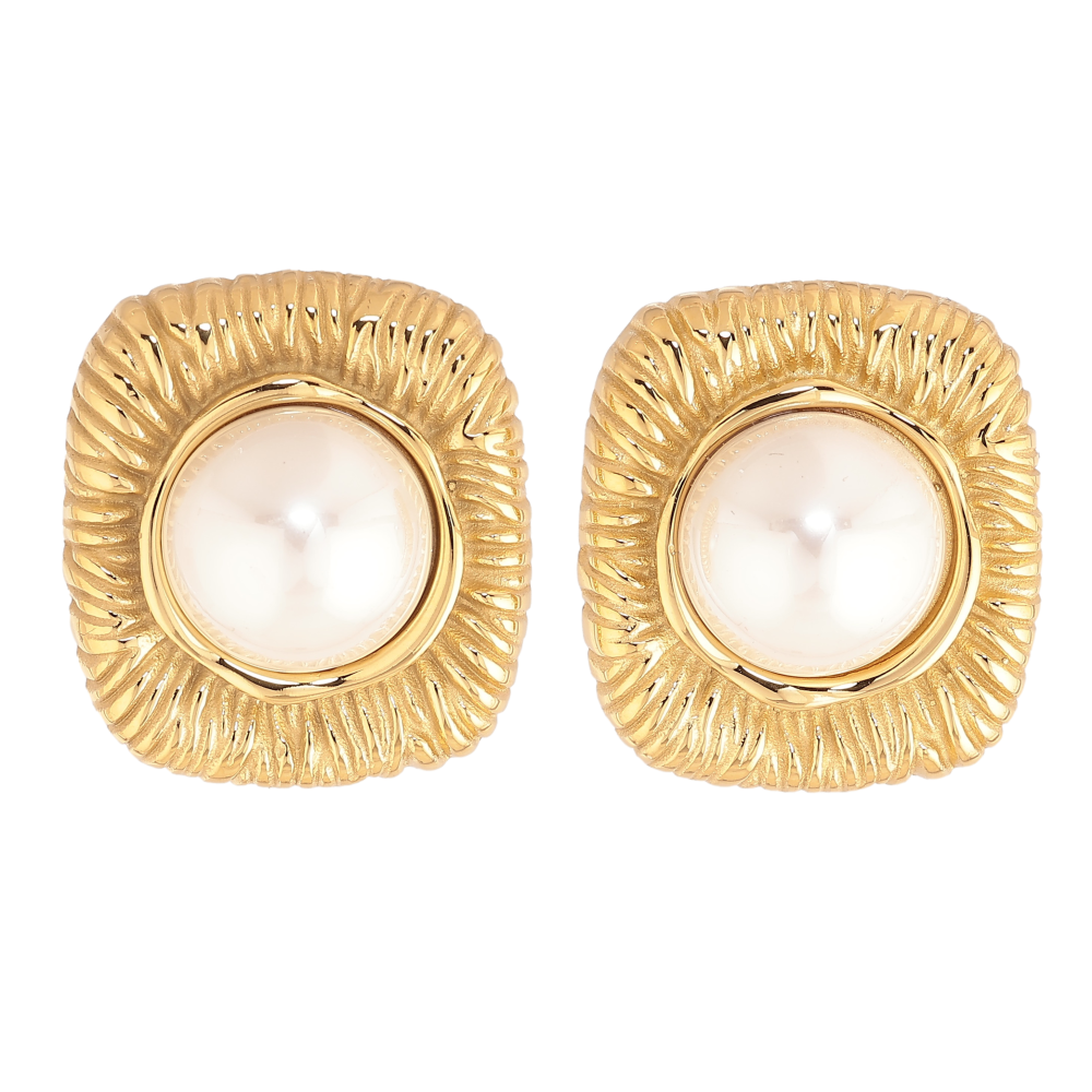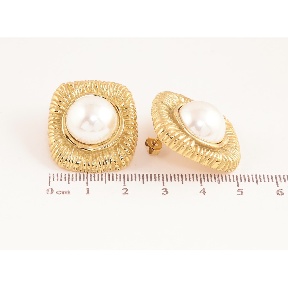 Серьги Нержавеющая сталь пусеты "Узор с жемчужинами"