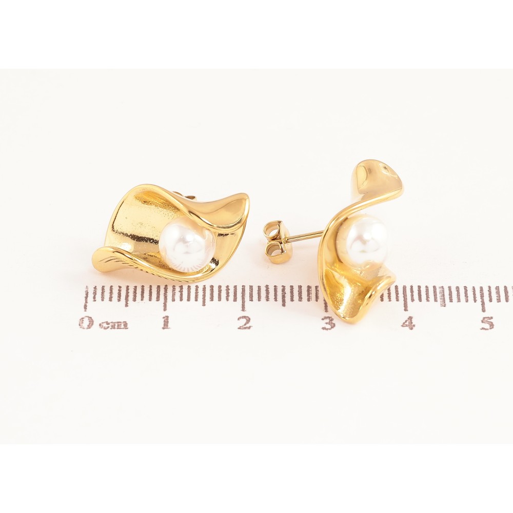 Серьги Нержавеющая сталь пусеты "Узор с жемчужинами" на одну сторону