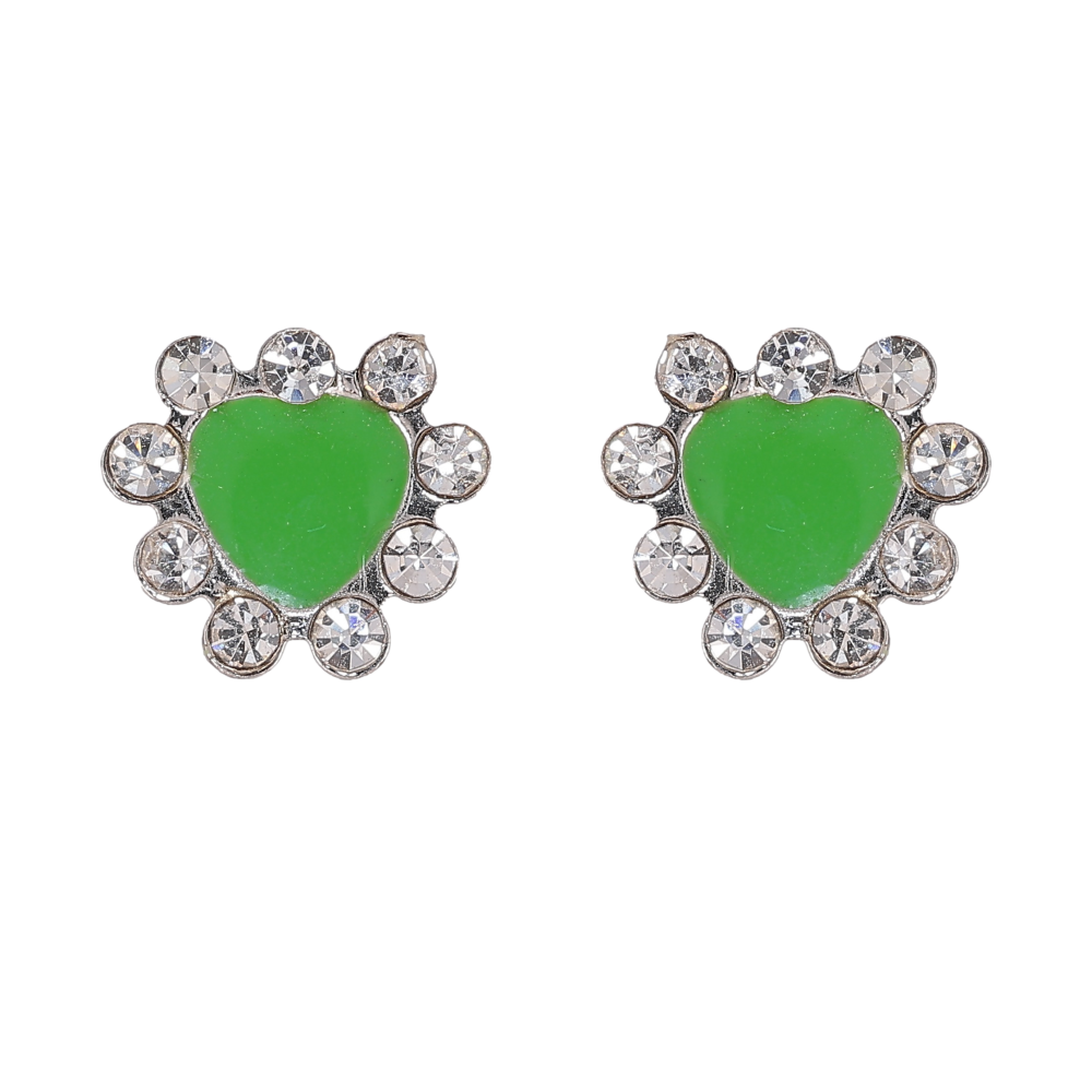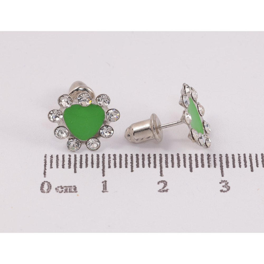 Серьги пусеты "Зеленые сердечки с эмалью и стразами"