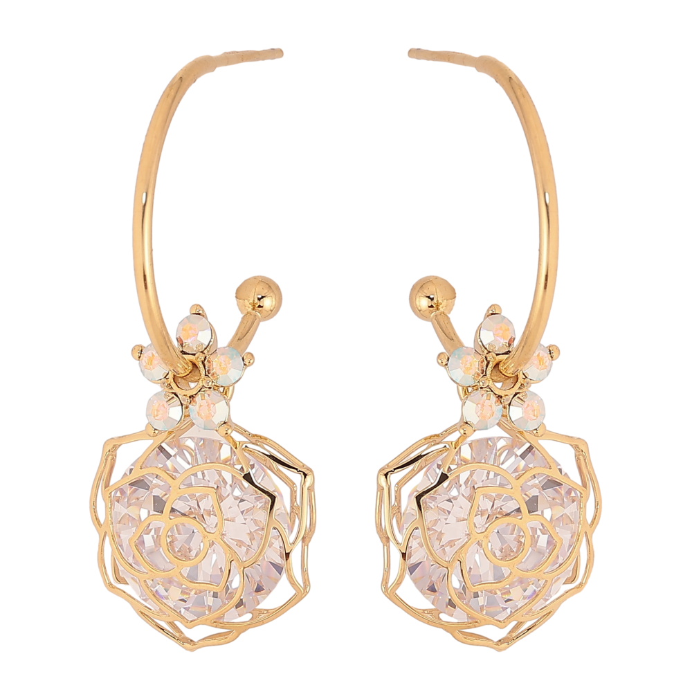 Серьги Xuping цвет 14K с кристаллами Swarovski пусеты "Цветочки с кристаллами АВ на дугах"