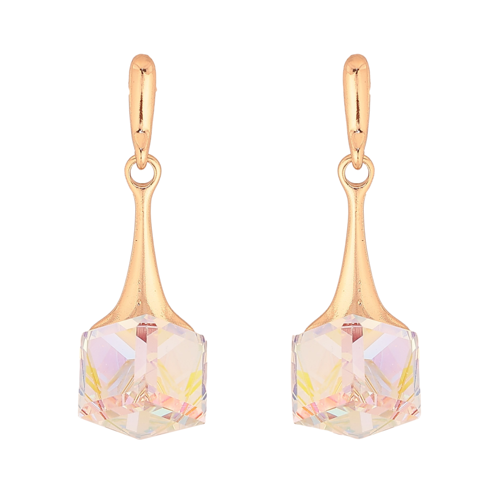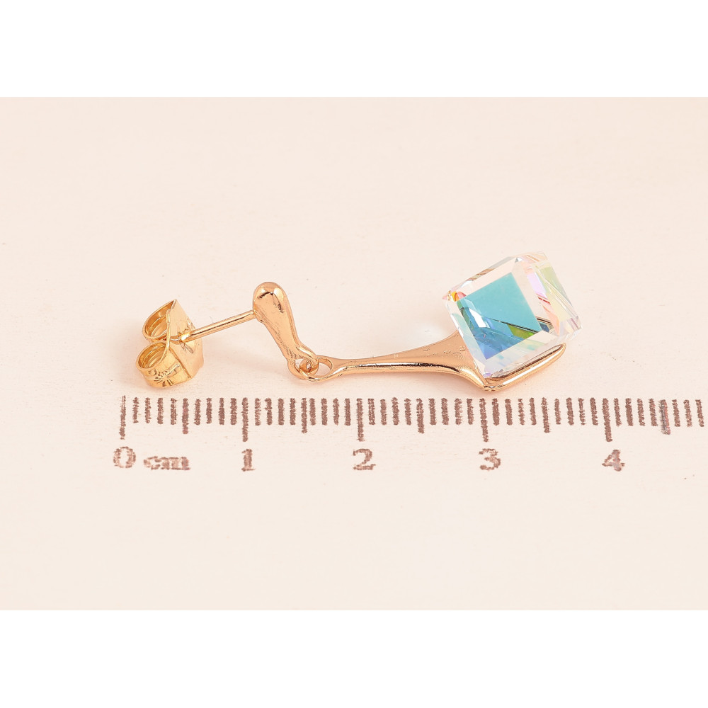 Серьги Xuping цвет 18K с кристаллами Swarovski пусеты "Кристальные кубики Shimmer на подвесках"