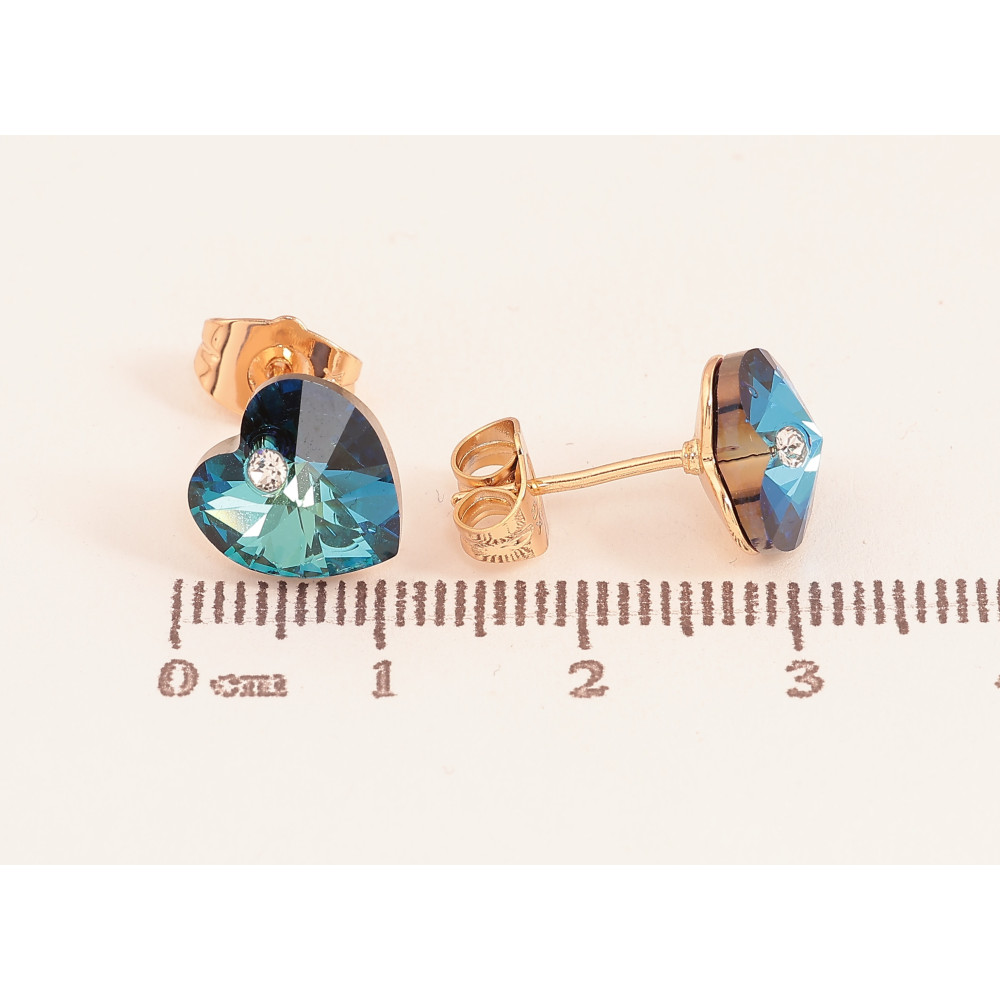 Серьги Xuping цвет 18K с кристаллами Swarovski пусеты "Сердечки Metallic Blue"