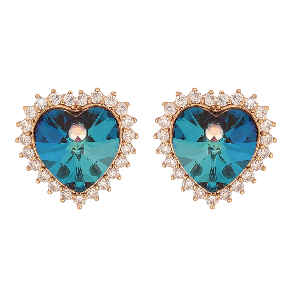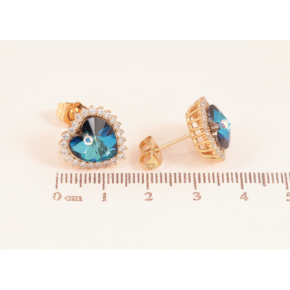 Серьги Xuping цвет 18K с кристаллами Swarovski пусеты "Сердечки Metallic Blue в обрамлении кристаллов"