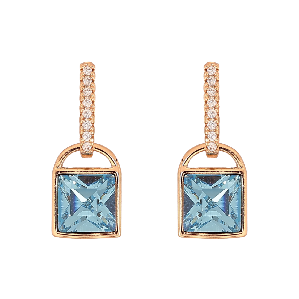 Серьги Xuping цвет 18K с кристаллами Swarovski пусеты "Замочки с кристаллом Aquamarine"