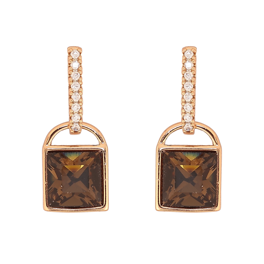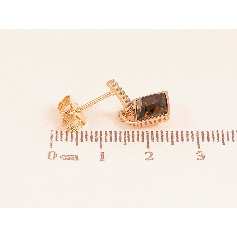 Серьги Xuping цвет 18K с кристаллами Swarovski пусеты "Замочки с кристаллом Smoked Topaz"
