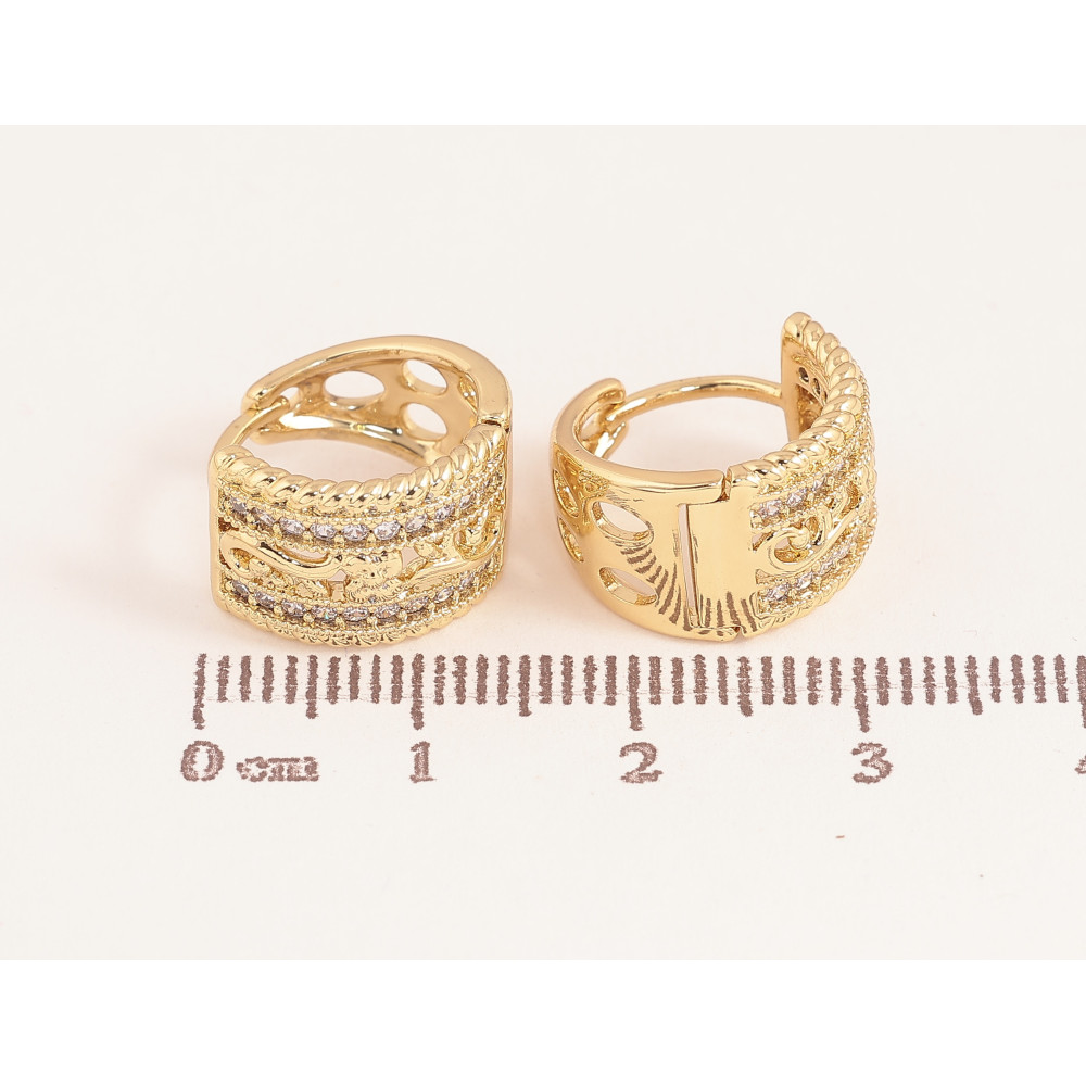 NEW Серьги Xuping цвет Позолота 14K колечки "Узор с кристаллами" фото №1
