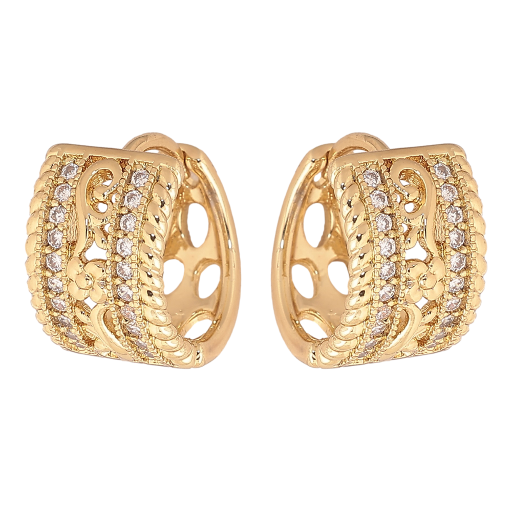 Серьги Xuping цвет Позолота 14K колечки "Узор с кристаллами" фото №1