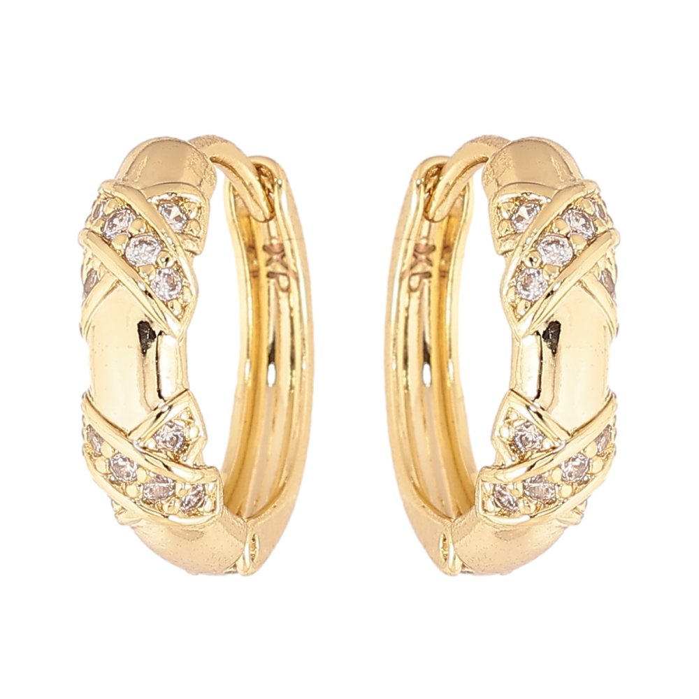 Серьги Xuping цвет Позолота 14K колечки "Узор с кристаллами" фото №1