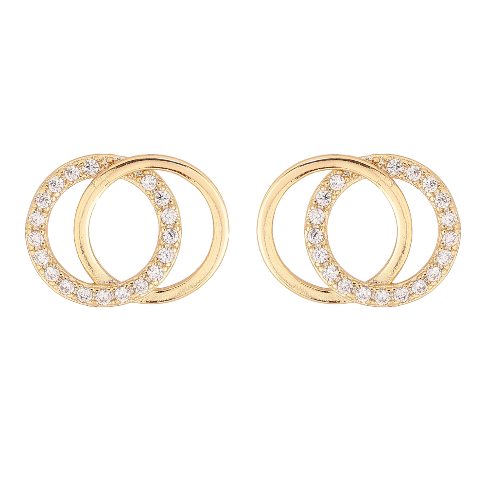 Серьги Xuping цвет Позолота 14K пусеты "Колечки с кристаллами"