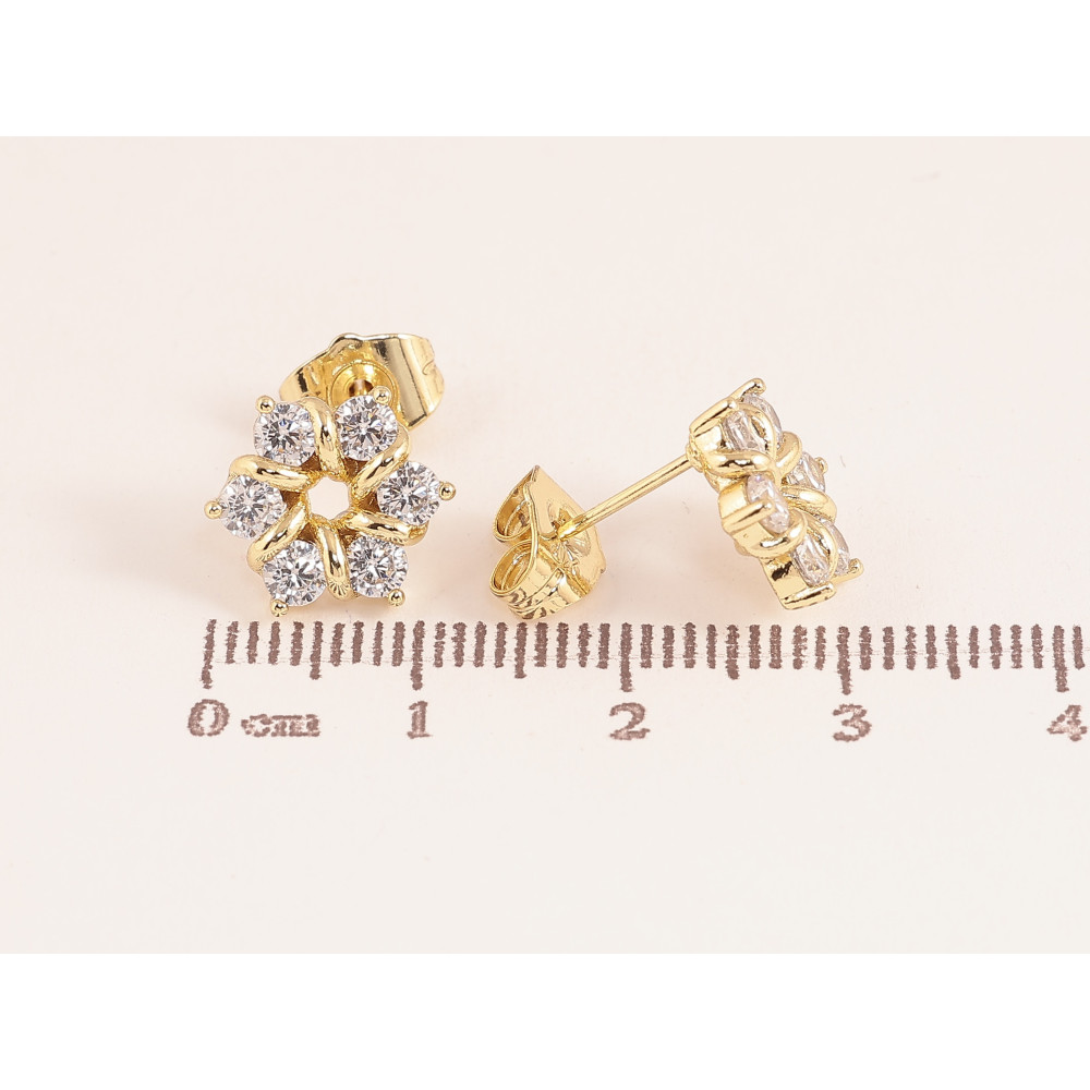 Серьги Xuping цвет Позолота 14K пусеты "Кристальные цветочки"  фото №1