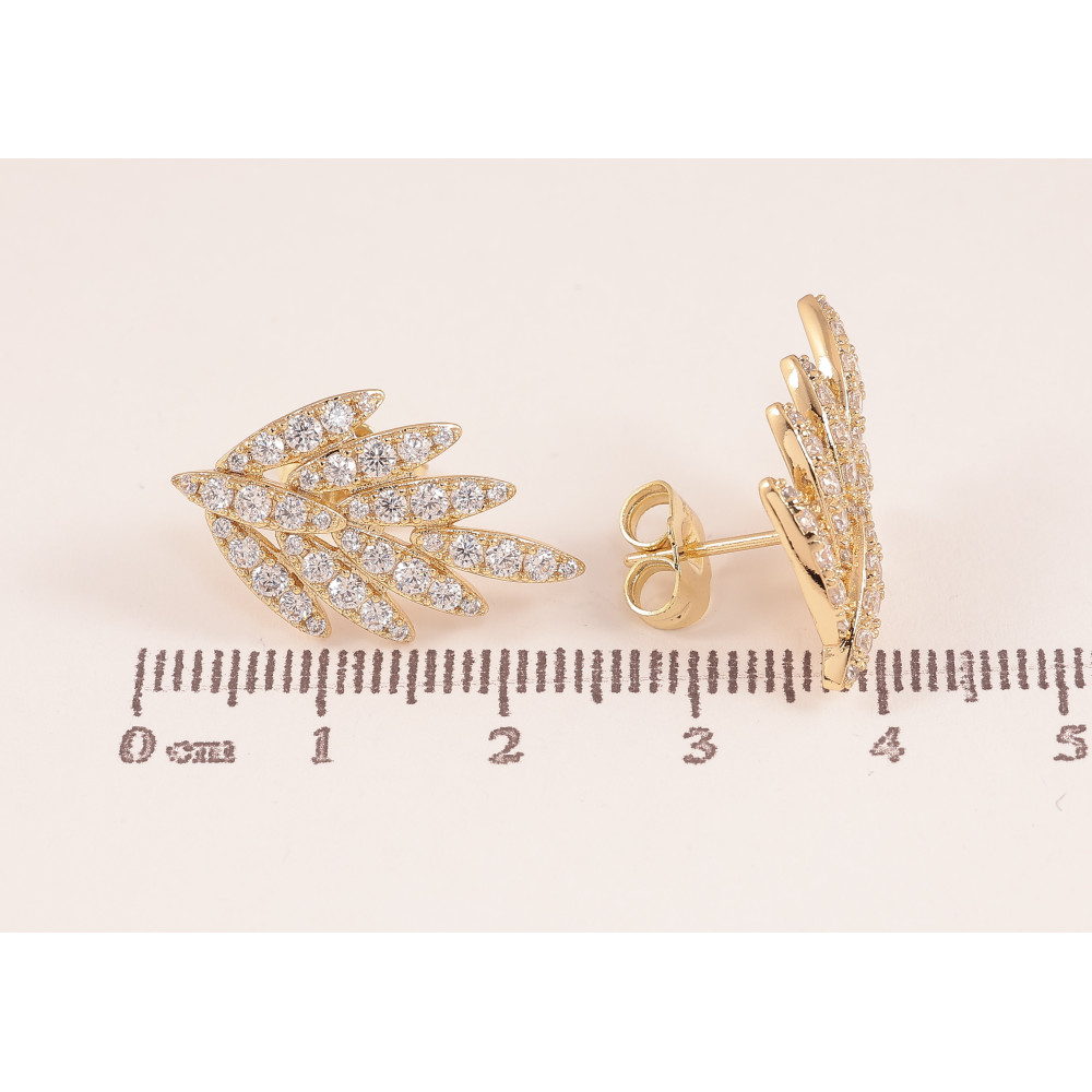 Серьги Xuping цвет Позолота 14K пусеты "Листики с кристаллами"