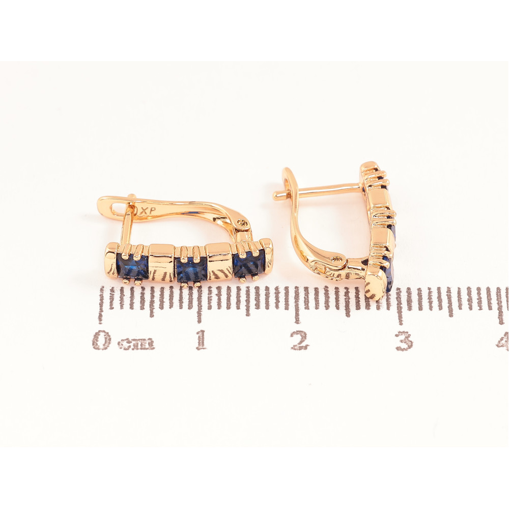 Серьги Xuping цвет позолота 18K английский замок узор с синими кристаллами