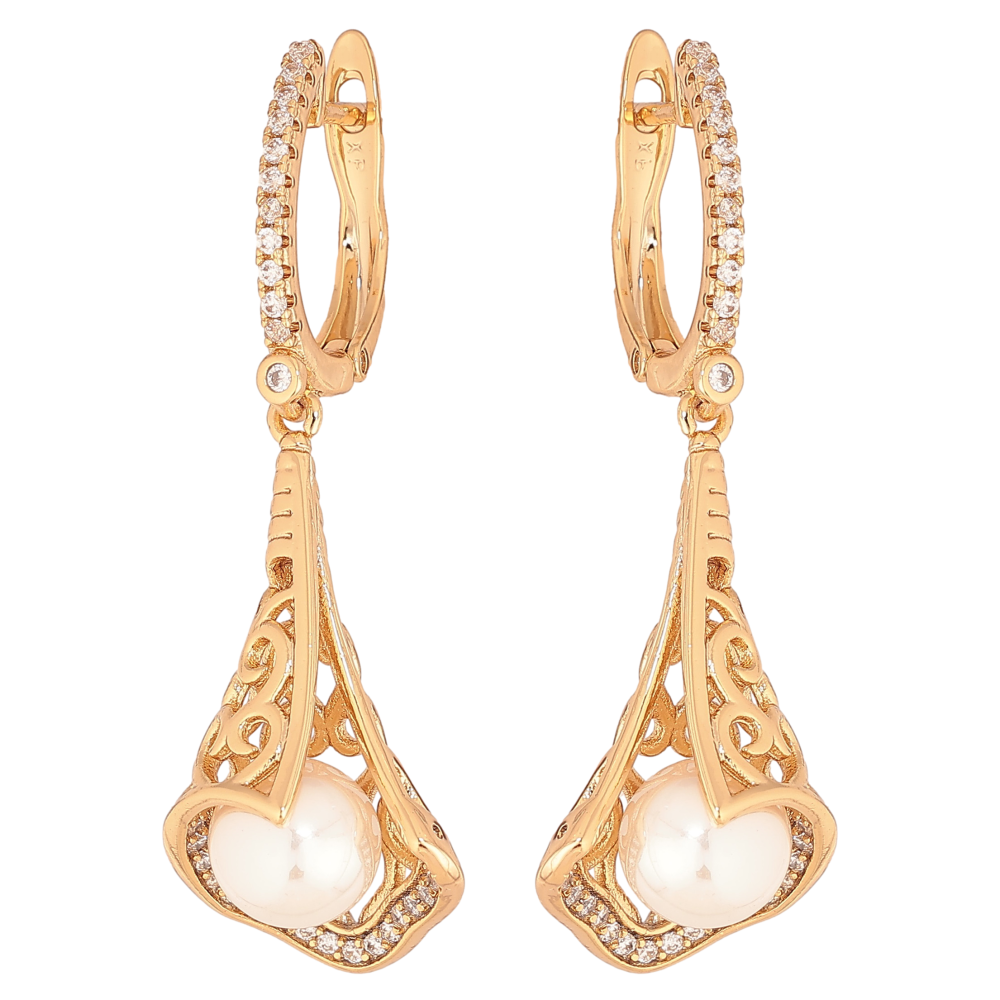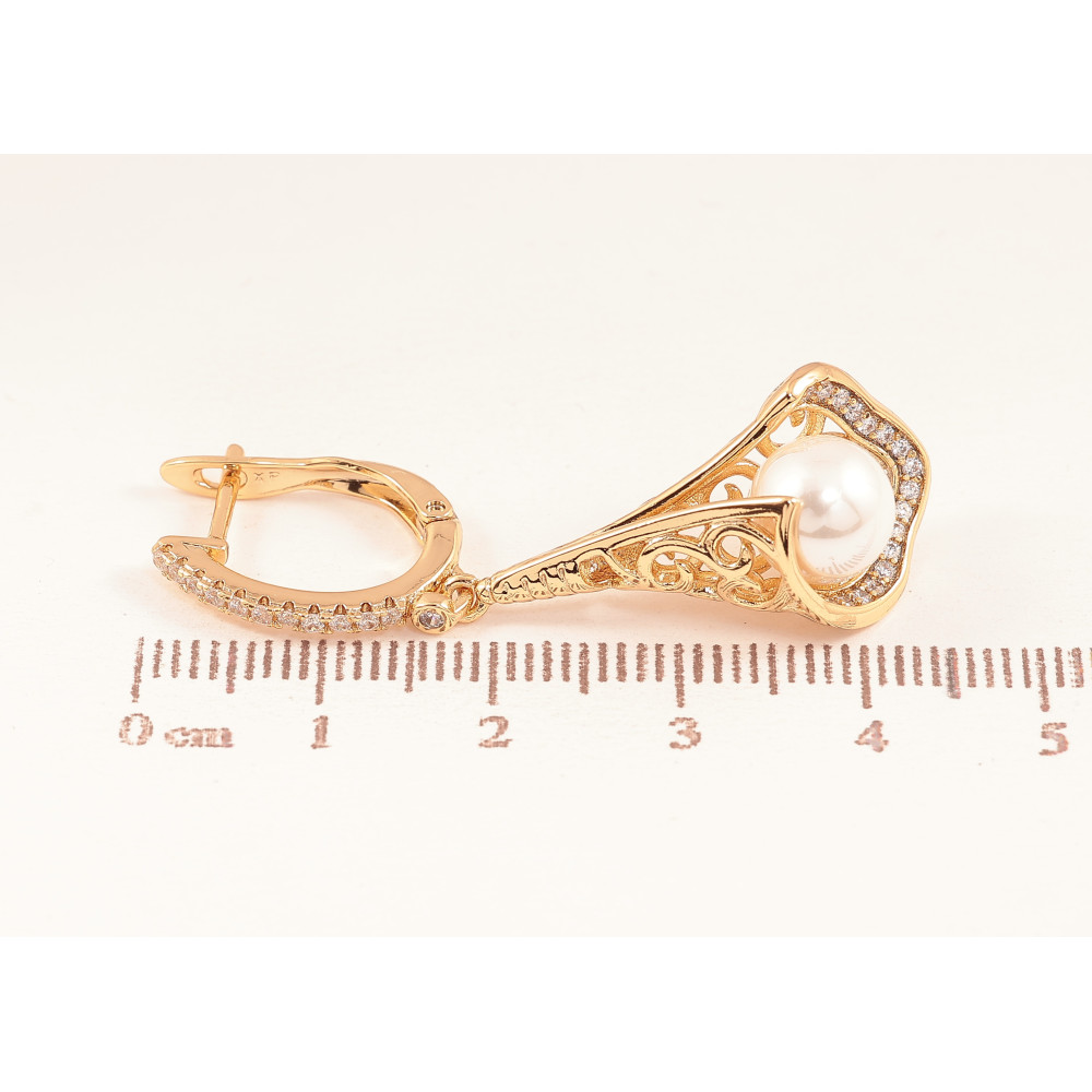 Серьги Xuping цвет Позолота 18К английский замок "Ажурные подвески с жемчужинами"