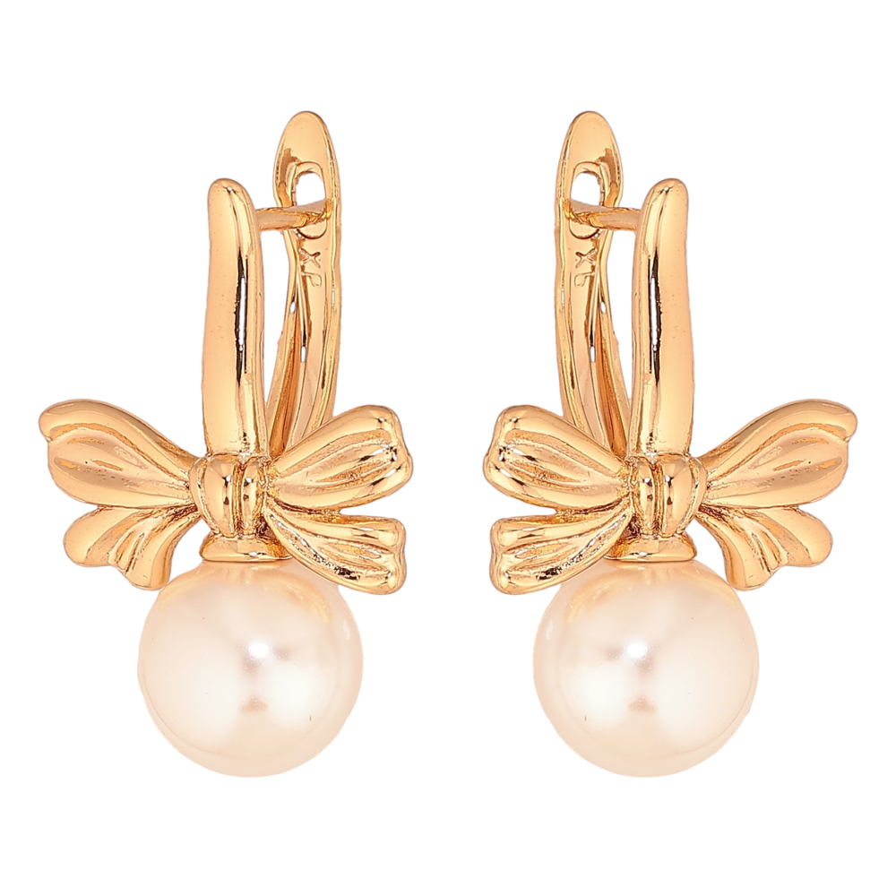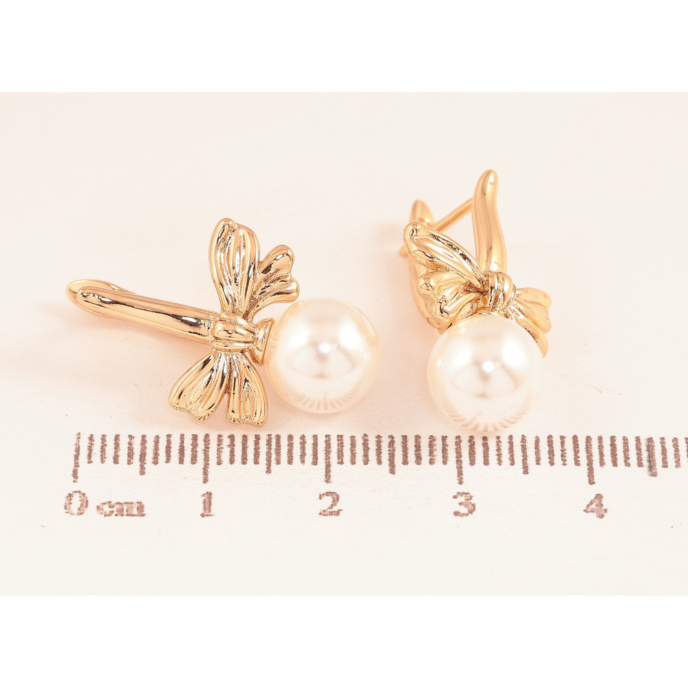 Серьги Xuping цвет Позолота 18К английский замок "Бантики с жемчужинами"