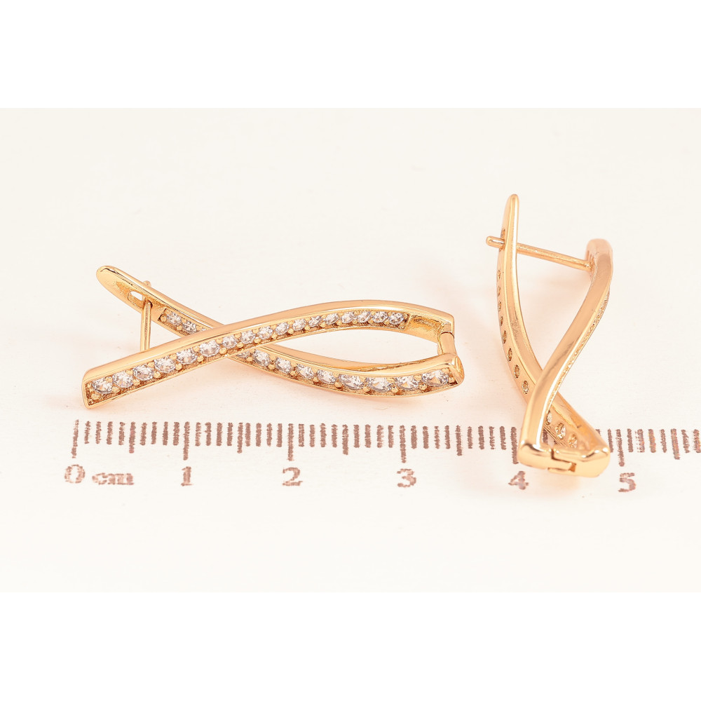 Серьги Xuping цвет Позолота 18К английский замок "Дорожки кристаллов"